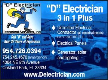 Quality work at a reasonable price. We also service & install any size generator. Licensed & Insured (98-CME-1807-X). 954-257-9509.