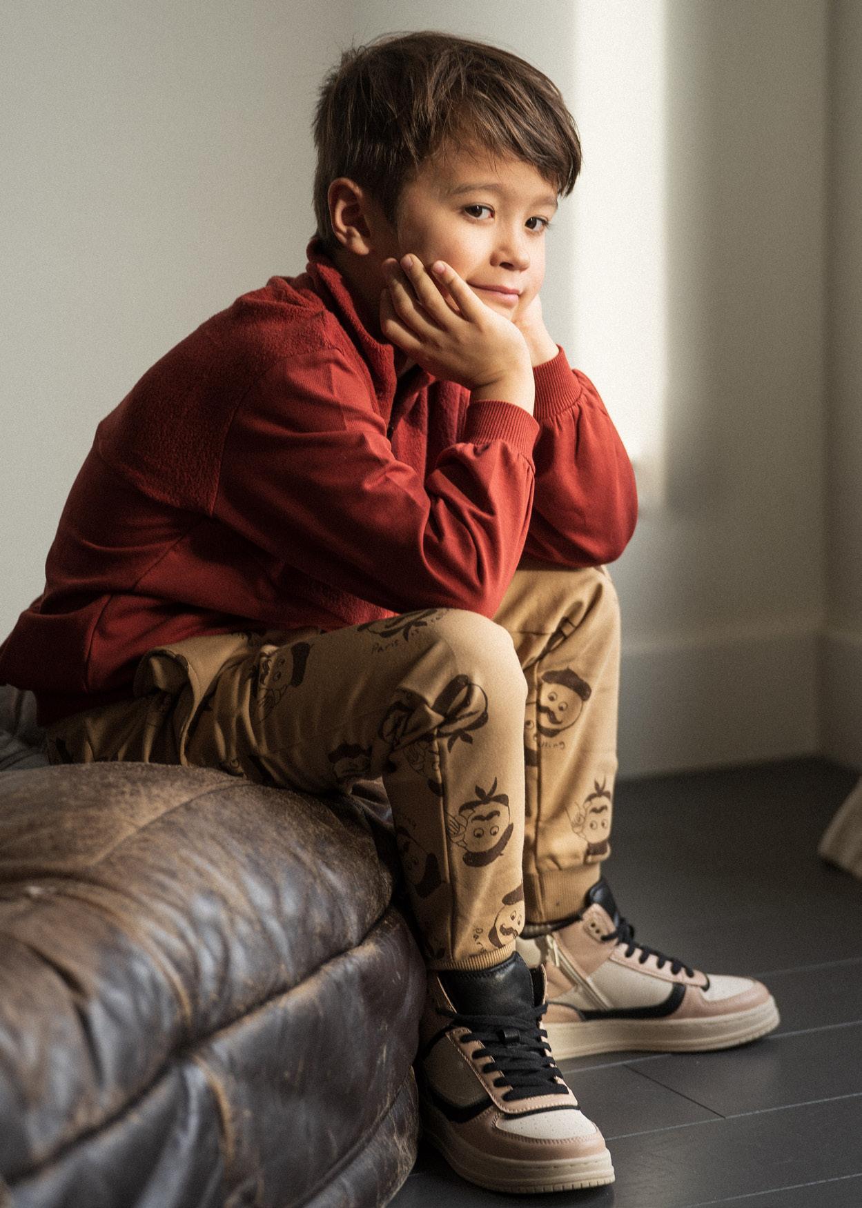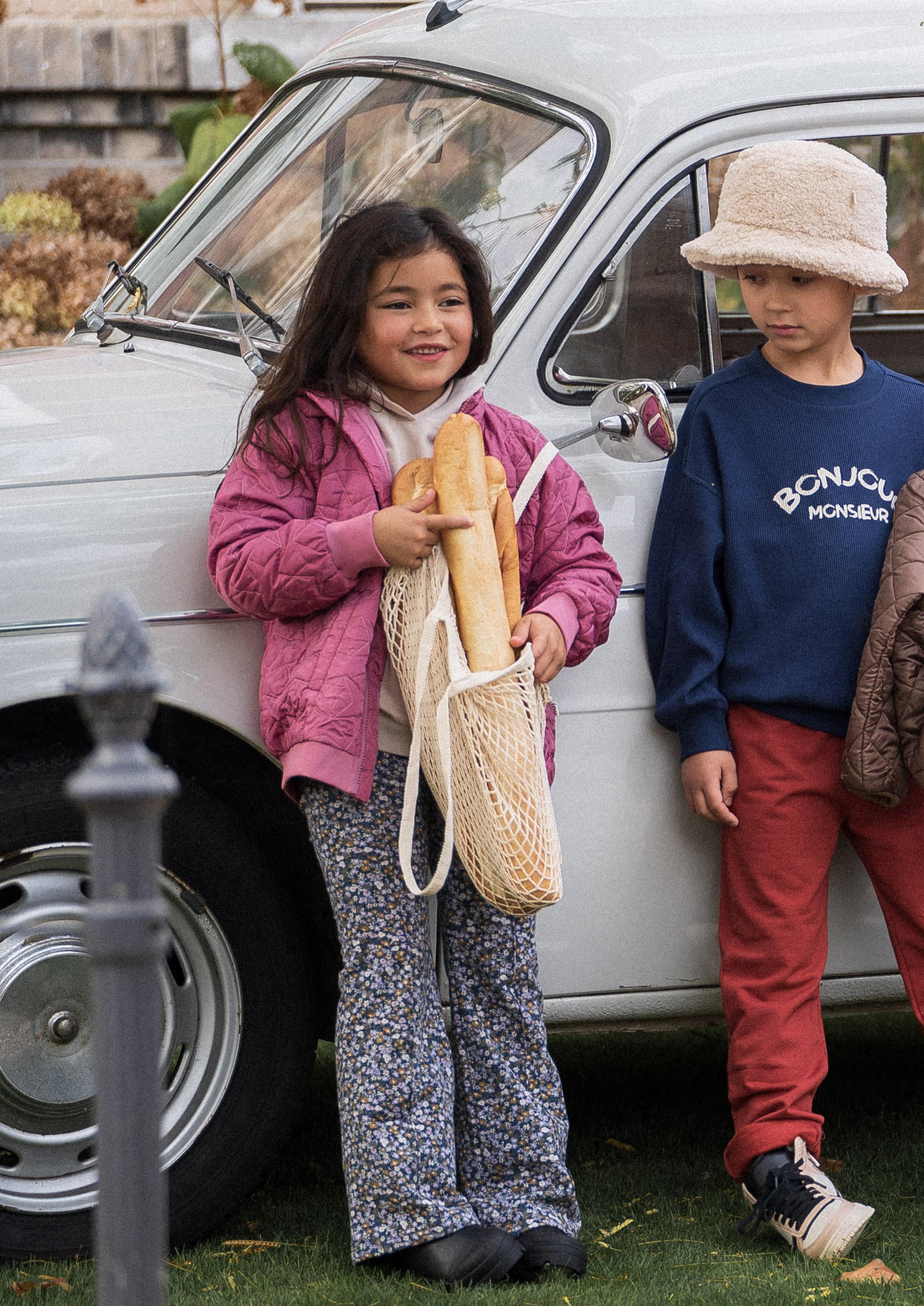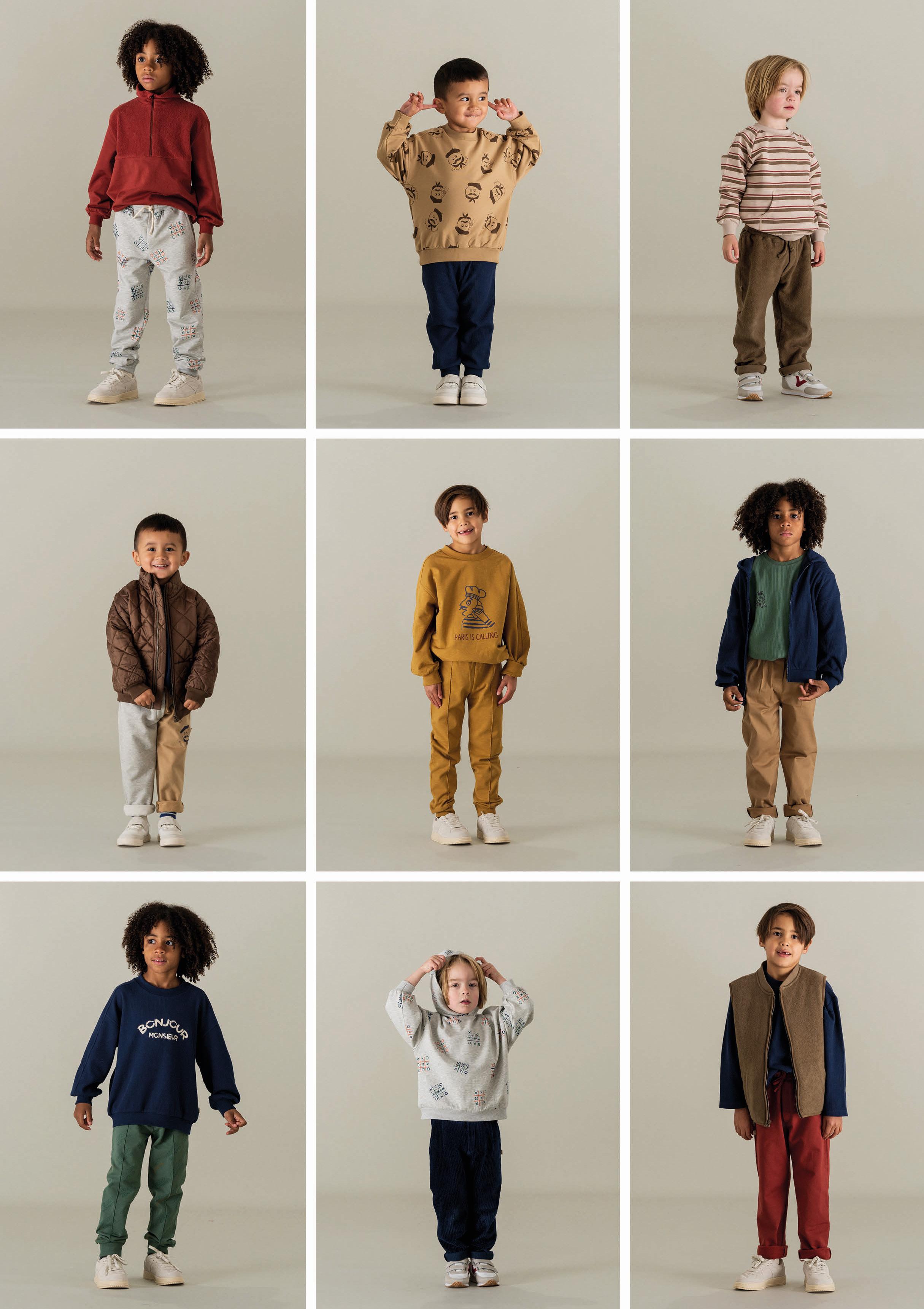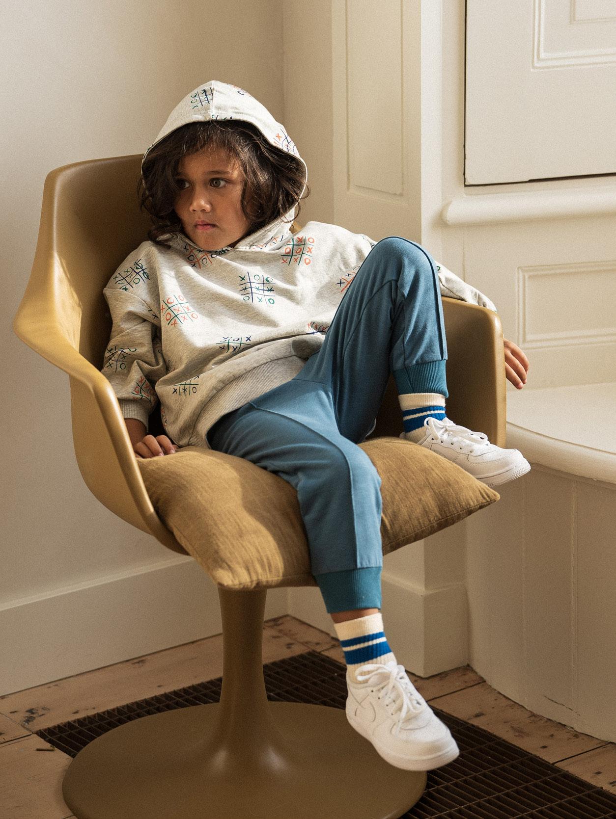 With this collection we empower our petits adventurers to explore their creative side. Do a dance, write a poem, create art! We created playful and artistic items but still relaxed and comfortable to play and move around in. We match our funny monsieur print with a relaxed jogger and hoodie. A cute checkered blouse which will remind you of a classic French kitchen table.