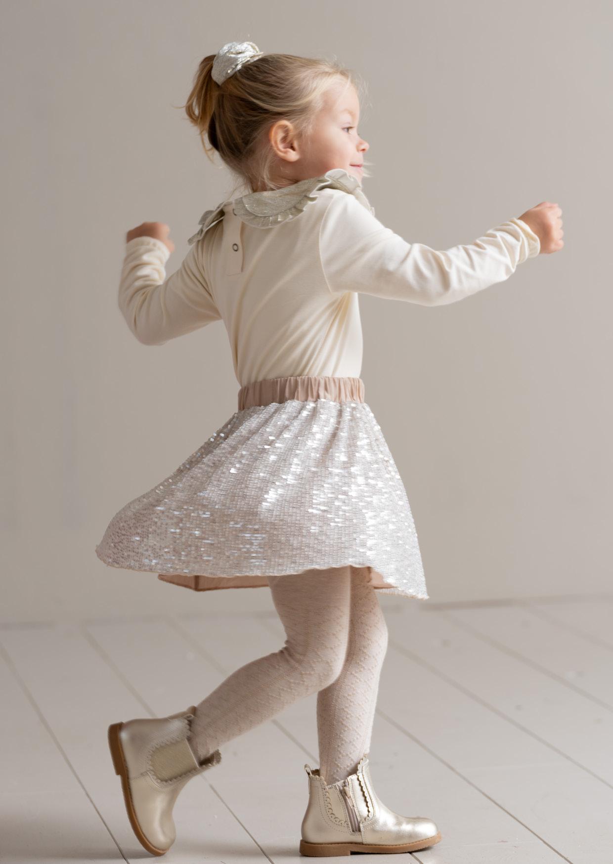 Color: French Grey - Ecru (Cotton Fleece + Peach - Sequins)