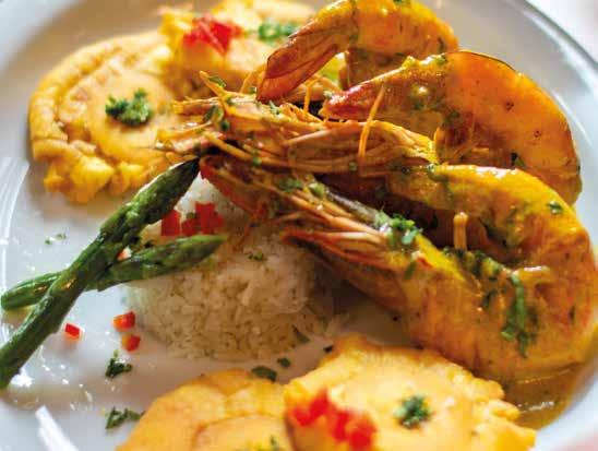 Tasting shrimp in coconut sauce (find the recipe on page 23) in front of the beach at Isabela Island, Galapagos is a must to me. Enjoy a local craft beer at Santa Cruz Brewery in Puerto Ayora, feeling the sea breeze and celebrating the unique wildlife encounters of the day. At Casa Manuela restaurant in Old Town Quito, try a locro de queso (potato soup with cheese and avocado, a must-taste dish). Just be aware that credit/debit cards are not accepted everywhere; especially in local restaurants where only cash will be used.