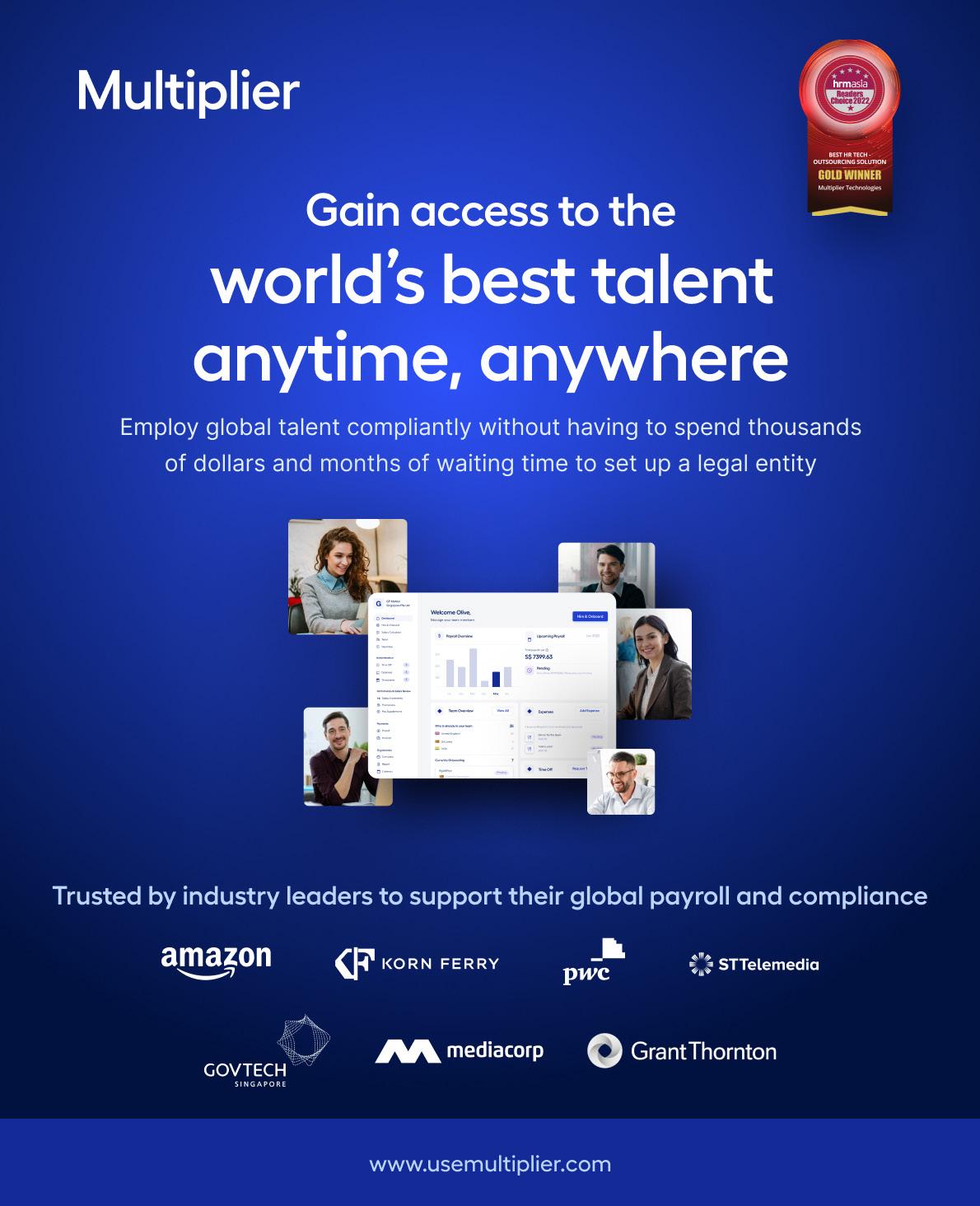 was Multiplier, whose SaaS-based platform allows employers to manage their staff from one single dashboard. Employers may also leverage the platform’s capabilities to recruit foreign talent without the need to establish local subsidiaries in each country.