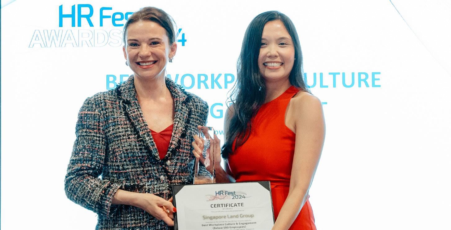 Singapore Land Group has been awarded Best Workplace Culture & Engagement (below 500 employees) at HR Fest Awards 2024 for its commitment to fostering a nurturing work environment, employee wellbeing, diversity, and empowerment.