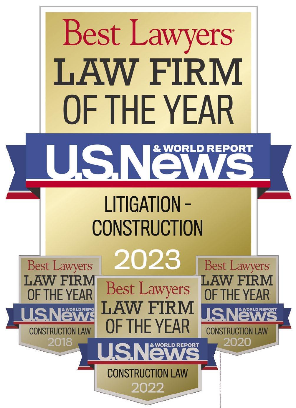 Named the nation’s “Law Firm of the Year” for Litigation - Construction by U.S. News & World Report – Best Lawyers “Best Law Firms,” 2023 edition, and “Law Firm of the Year” for Construction Law, 2022, 2020 & 2018 editions