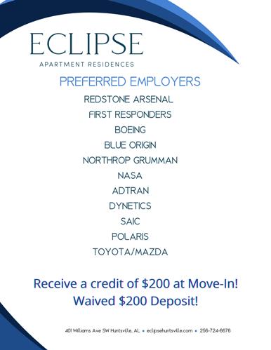 Hiring!WeareOpenPositions: Program Integrator Budget Analyst FMS Program Engineer Technical Project Manager and more! SCAN ME www.ironmountainsolutions.com/careers/ JoInourTeam LEARN FOR LIFE OLLI at UAH is a community of lifelong learners. Connect with fellow adults, age 50 and up and engage in a variety of personal enrichment activities, in-person and online. FALL 2022 COURSE Osher.uah.eduGUIDE 256.824.6183OLLI.info@uah.edu Y O U ' R E I N V I T E D W W W . N E S I N F I T . C O M P L E A S E J O I N U S 1 3 0 0 M E R I D I A N S T N , S T E 2 2 0 0 H U N T S V I L L E , A L 3 5 8 0 1 S E P T E M B E R 2 8 , 2 0 2 2 | 3 5 P M R I B B O N C U T T I N G A T 4 P M R S V P H E R E N E S I N F I T @ L I N C O L N M I L L September 23, 2022
