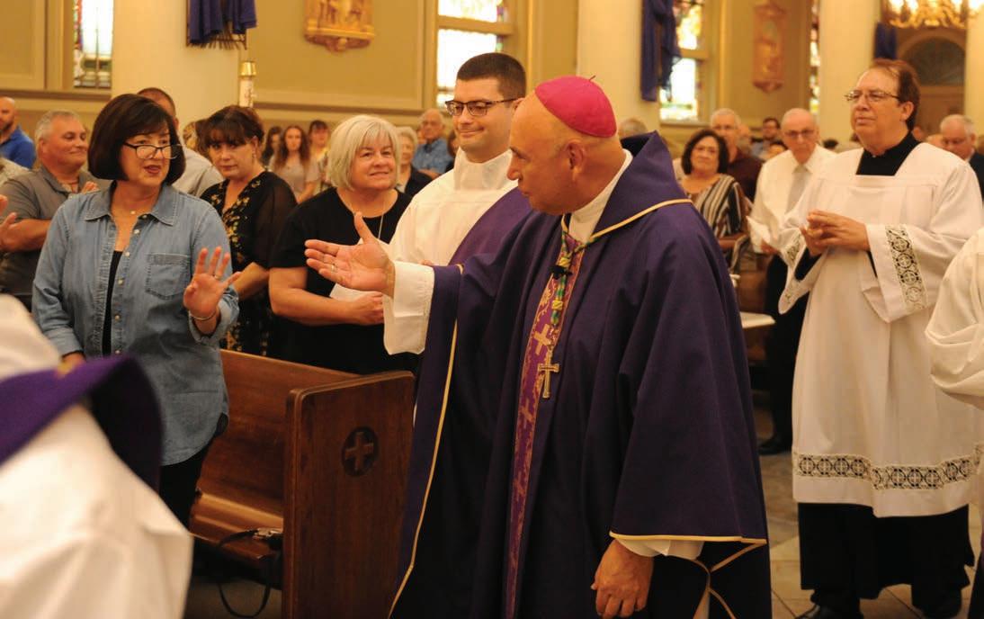 The apostolic nuncio and Archbishop Aymond escorted Bishop a