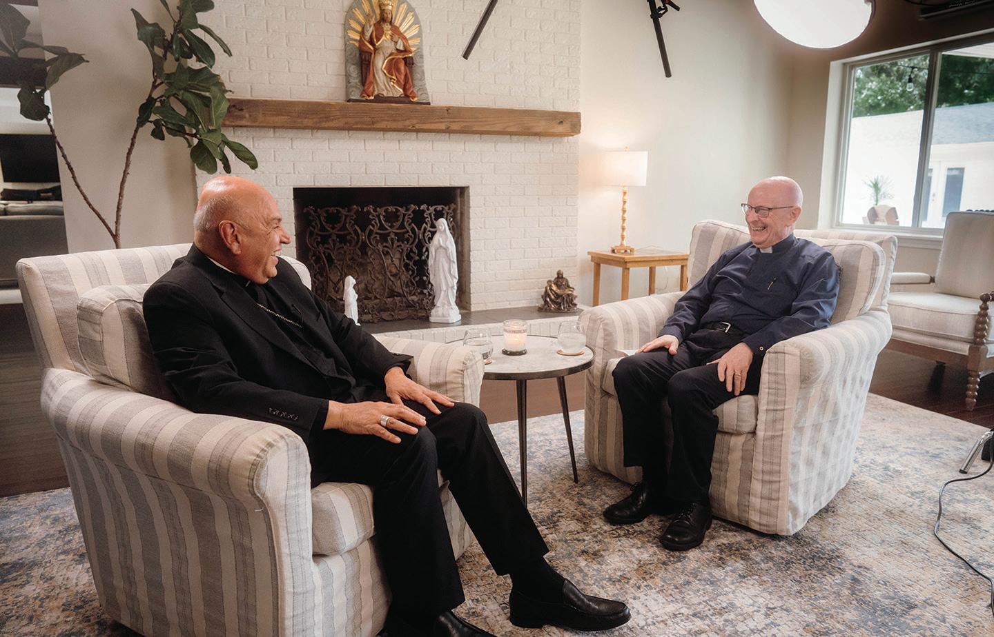 In the homey atmosphere of the St. Joseph the Worker Seminarian House of Formation in Thibodaux, Bishop Mario Dorsonville and Very Rev. Patrick J. (P.J.) Madden sat down to engage in conversation ranging from lighthearted to inspired in front of cameras and studio lights recently for the diocesan Office of Communications.