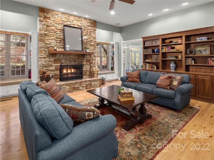 If privacy is what you seek than look no further than this lovely beautifully maintained home in a quiet neighborhood close to downtown Tryon. This well built home offers beamed vaulted ceilings in the living and dining rooms separated by a double sided fireplace. As well as built ins to display your family treasures. Call Holly