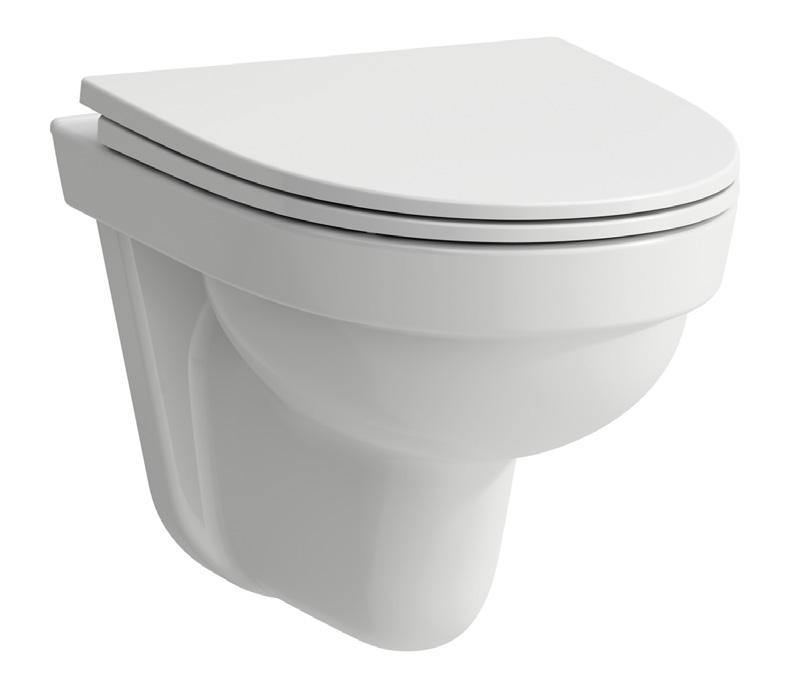 WC veggskál með hæglokandi setu og Silent Flush. Ný tækni frá Laufen sem hreinsar betur með minna vatni. 7920025