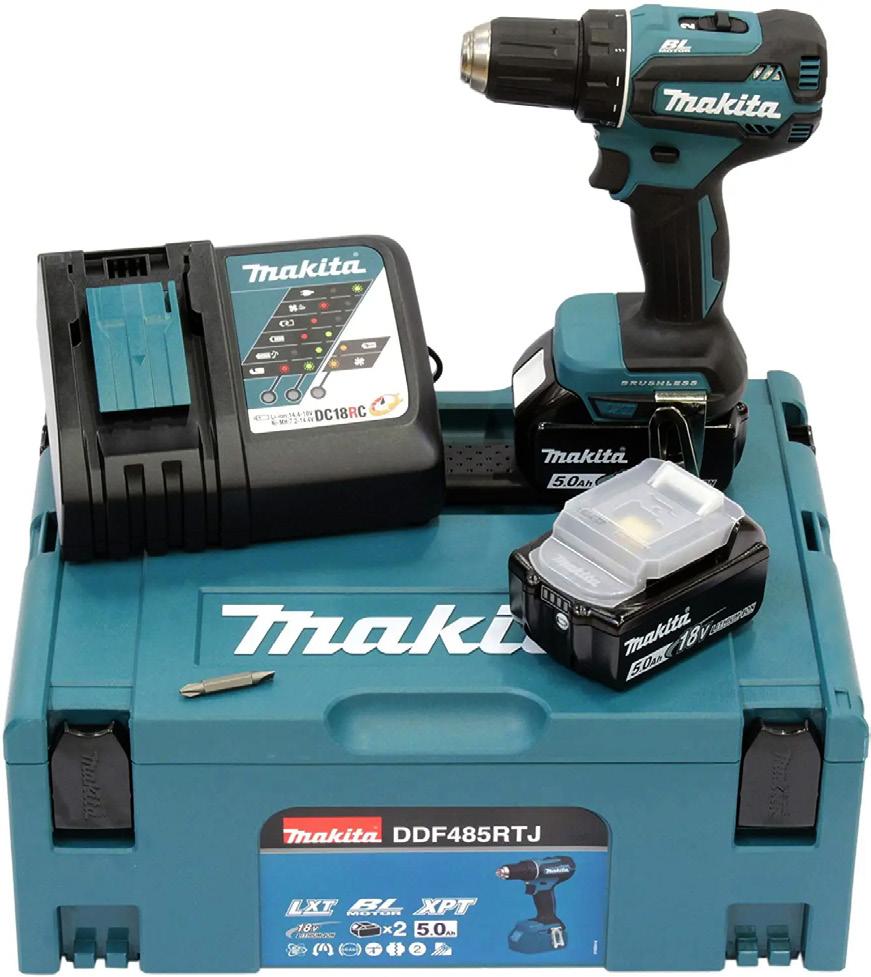 Borvél, 18v 2 stk. 5.0Ah rafhlöður, 2ja gíra. Hraði 0-500/1900 sn.mín. Kolalaus mótor. Hersla 50Nm. Hleðslutími 45 mín. 13 mm patróna. Led ljós og beltishanki MAKPAC. Taska Þyngd 1,7 kg. 5255298
