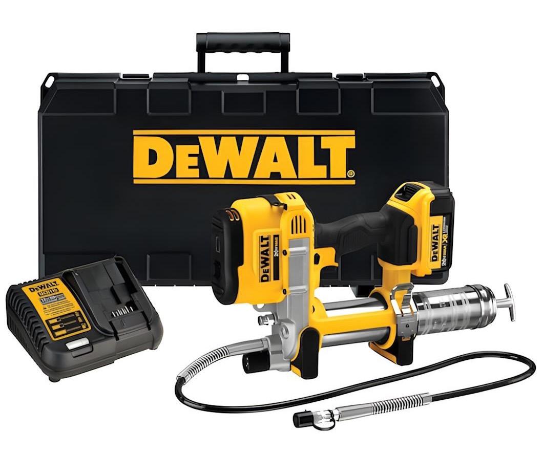 Koppafeitissprauta 18V 690 bör (10.000 PSI) þrýstingur með flæðishraða 147g á mínútu 1m barki LED ljós til að lýsa upp vinnusvæði Axlaról Kemur í plasttösku með 1x4.0Ah rafhlöðu og hleðslutæki. 5159275 25