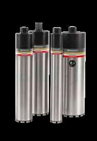 ELITE-level drill bits that deliver smooth, fast drilling in demanding applications. Available for various materials like heavily reinforced concrete, hard aggregate and abrasives. Diameters 92-350 mm.
