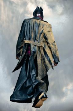 John Galliano’s sartorial storytelling at Maison Margiela simultaneously warms hearts, connects them, and shatters them into pieces. Much like his history-making Artisanal 2024 collection earlier this year, the designer’s 2022 “Cinema Inferno” show—a western-gothic tale that set couture-clad lovers in a mythical Arizona desert— reminded viewers that fashion can make you feel something. Galvanized by the spectacle, the brand’s Sandstorm Coat, punched with cut-out sections and a worn-out facade, is persuasive in its bracing of the fantastical destination’s arid climate. As its name suggests, the rubberized cotton silhouette employs a “sandstorming” technique, miming the effects of a real-life dust devil on fabric. Secured with a waist belt, the double-breasted ensemble is complete with Maison Margiela’s “Four Stitches” quietly sewn into its back.