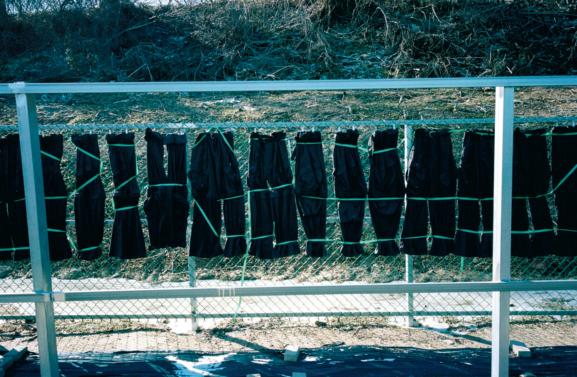 For her first major gallery show, in 2021, Prêt-àPatria—a portmanteau of the French for “ready-to-wear” and the Spanish word patria, for “homeland”—she homed in on one such motif: the soldier. The exhibition, at Kurimanzutto’s Mexico City headquarters, consisted of a sculpture shown alongside a video that was originally imagined as a performance, like a conceptual runway show, but COVID had other plans.