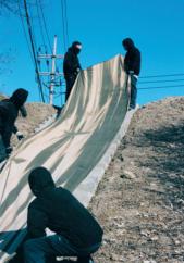 After the raw materials are matched with sewing and processing techniques at Goldwin’s Toyama, Japan factory, the sample garments are sent to the brand’s attached TechLab. There, they are tested in a high-tech “artificial weather room” that simulates various inclement conditions (driving winds, torrential downpours) before being sent to the nearby Tateyama mountain range for field testing.