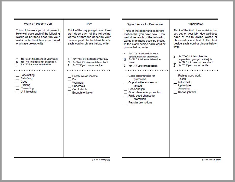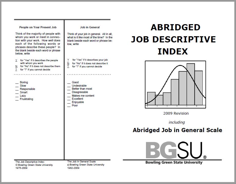 Bowling Green State University. (2009). Abridged Job Descriptive Index. Retrieved from https://www.bgsu.edu/arts-and-sciences/psychology/services/job-descriptiveindex.html