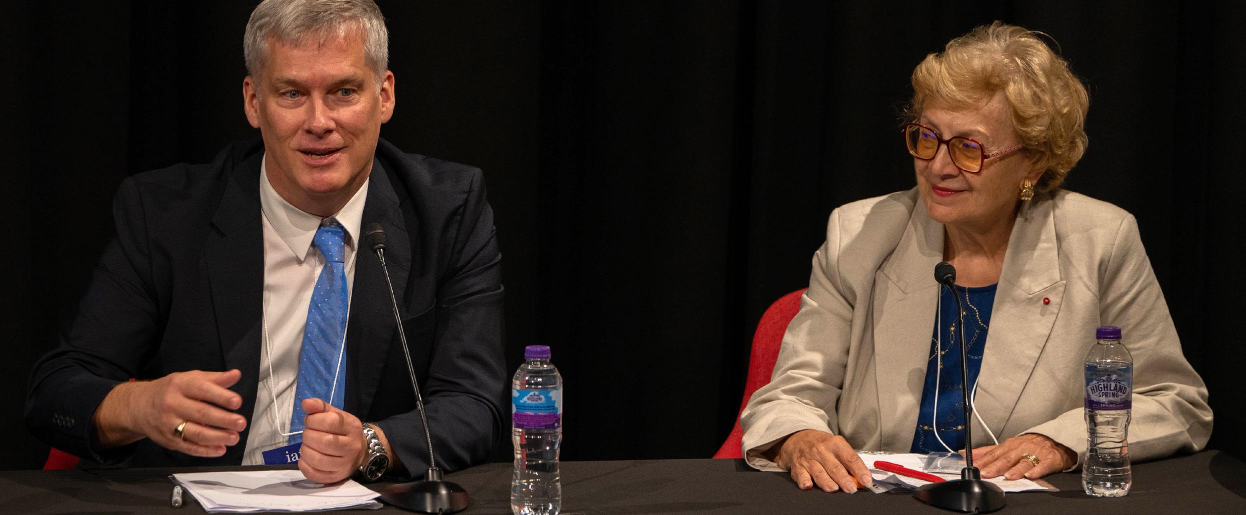 ‘Peace is a contested concept. It is not only the absence of war,’ answered Professor Howe. According to Professor Howe, instead of teaching the war/peace dichotomy common to international relations, he would teach about conflict and conflict resolution. ‘We all experience conflict in our everyday lives. In fact, we can even experience conflict without anyone else being around’. He made an anecdotal reference to the internal conflict of wanting to lose weight but loving to eat chocolate. How to reconcile these conflicting thoughts within ourselves is the question we should focus on. Conflict is not necessarily a bad thing. ‘What is bad is when it manifests itself in a violent way,’ he concluded. ‘Hate is socially constructed. We are not born into this world hating other people. It is the product of securitisation, deflecting from our own shortcomings. As it is socially constructed, we can socially deconstruct it. That is the objective of peace education: to socially deconstruct hatred’. Lack of empathy, and commonality instead of division, is the basis of what we need to talk about, added Professor Hall.