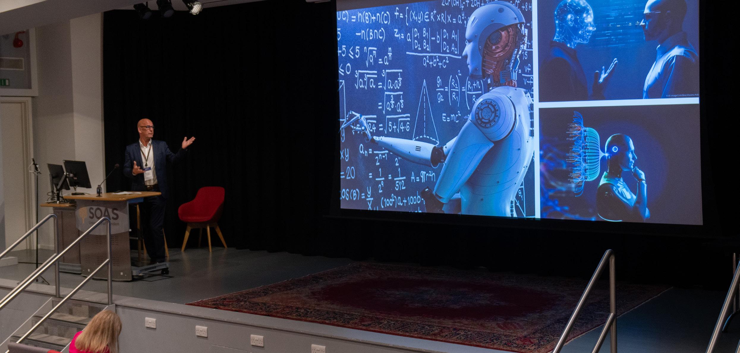 The intersection of AI and human intelligence was explored with a focus on how AI, while powerful, lacks the creativity and ethical judgement inherent in human intelligence. The necessity of interdisciplinary collaboration in AI development was a key point to ensure that AI technologies are inclusive, ethical, and serve societal needs, particularly through the inclusion of the Arts & Humanities in its ongoing development and range of use. The discussion also emphasised the importance of critical and creative literacy in education, discussed as a way to empower students to navigate and critically engage with AI in meaningful ways. The conference also addressed the challenges of an ageing population and the role of AI in healthcare, particularly in supporting healthy ageing and social care. While acknowledging the potential of assistive robots and AI in enhancing healthcare, the speakers cautioned against over-reliance on technology, advocating for a balanced approach that integrates human compassion with technological advancements. The importance of interdisciplinary collaboration between AI developers and healthcare professionals was stressed to ensure that technology serves to enhance, rather than replace, human care.
