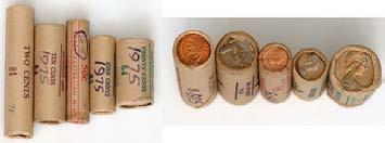 1487 1974 set of 5 Mint Rolls, 1 Cent to 20 Cents. The 5 Cent and 20 Cent are RBA (bank rolls), the rest RAM. Writing on rolls, end coins slightly toned as usual. High catalogue value. (5 items total). Assumed UNC