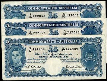 Signatures Ritchie, Griffiths, Cruickshank. Paper toned at corner, centre fold and flick. Consecutive trio. gEF/aUNC