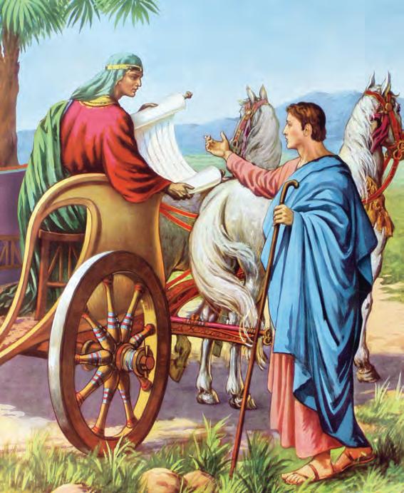 great persecution. The believers were scattered beyond Jerusalem and went everywhere, preaching the Gospel. Philip traveled to the city of Samaria. As the Samaritans heard Philip speak and saw the miracles he performed, they believed on Christ. The city was filled with joy! After Peter and John visited the new believers, Philip moved on to preach in other Samaritan villages. Suddenly, he was directed to travel to a remote, desert location. Why was Philip sent there? Whom would he meet? Would Philip be sensitive to the traveler’s spiritual needs and point him in the right direction?