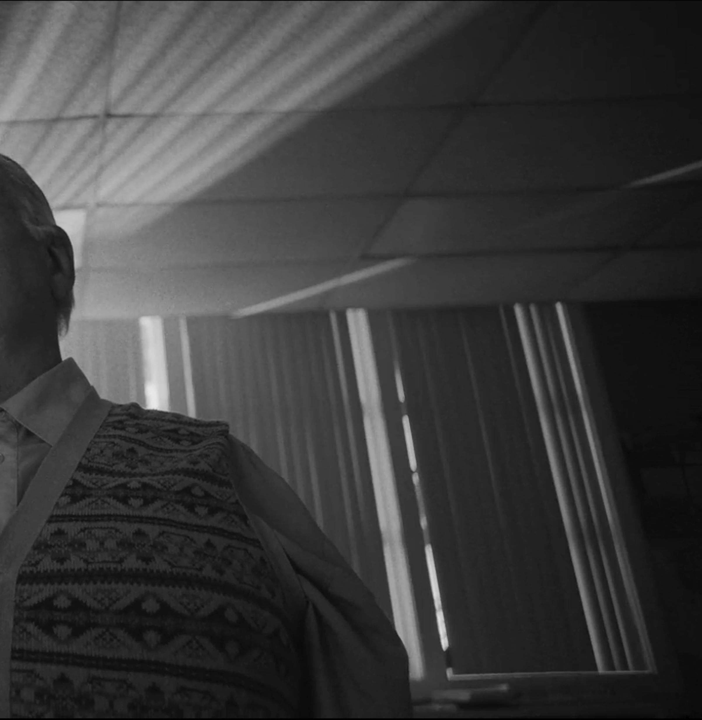 of him picking up his telephone realizing the line is tapped, a car-start montage and the final frame of his face with a double eye light from the tear in his eye as he attempts his escape.