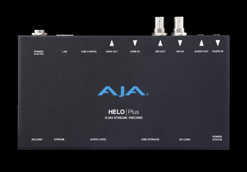 The HELO Plus is a portable, feature-rich H.264 dual-source streaming and recording device, designed to help video professionals achieve a higher production value with greater cost efficiency and a smaller gear footprint. HELO Plus features SDI and HDMI I/O and supports live streaming up to 1080p60 to nearly any content delivery network (CDN) or social streaming platform. For editorial purposes or on-demand viewing, users can simultaneously record the stream to SD card, USB, NFS, or CIFX network storage. To enhance live streams with graphic components, HELO Plus includes picture-in-picture functionality and a dynamic layouts feature to combine SDI and HDMI inputs into a single output stream with graphic overlays. AJA designed the product with flexibility in mind – be it in a studio or remote environment – creating a portable, compact form factor and fanless, silent operation. Device setup is straightforward, with intuitive front-panel record and stream buttons and a robust web-based UI for remote control. HELO Plus provides ultra-reliable performance for low-latency streaming needs with features like SRT support, enabling secure, high-quality live video even over low-bandwidth networks.