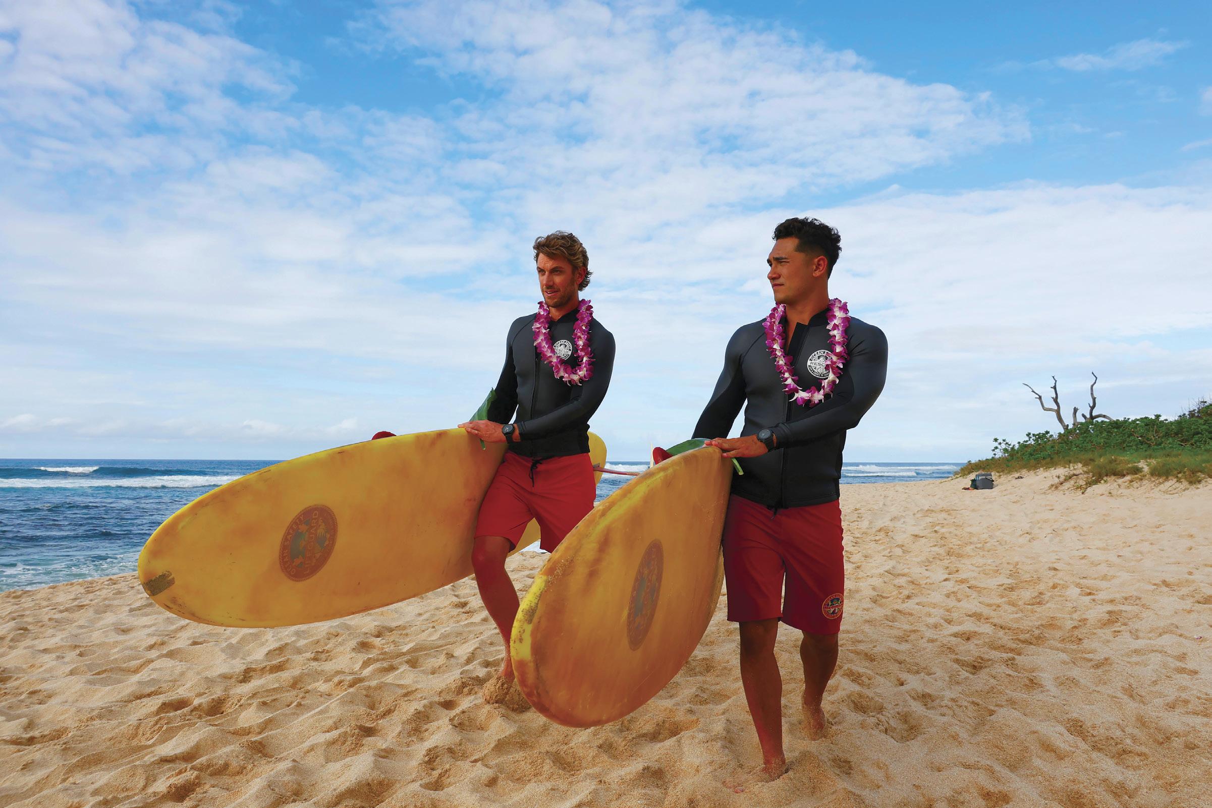 As for union members having each other’s backs, there’s no better example than my cover story ( The Incredibles , page 26) on the new FOX series Rescue: HI-Surf , shot with an all-Hawaii-based team on the island of O’ahu. While living/working in paradise may sound idyllic, this 19-episode show, created by John Wells and Matt Kester ( Animal Kingdom), was a demanding shoot. For starters, it’s 100 percent day exteriors and 100 percent handheld, requiring a 270-degree shooting zone. That meant Director of Photography Anka Malatynska (who headed up the land unit) had to wrangle Hawaii’s alwayschanging light in creative ways.