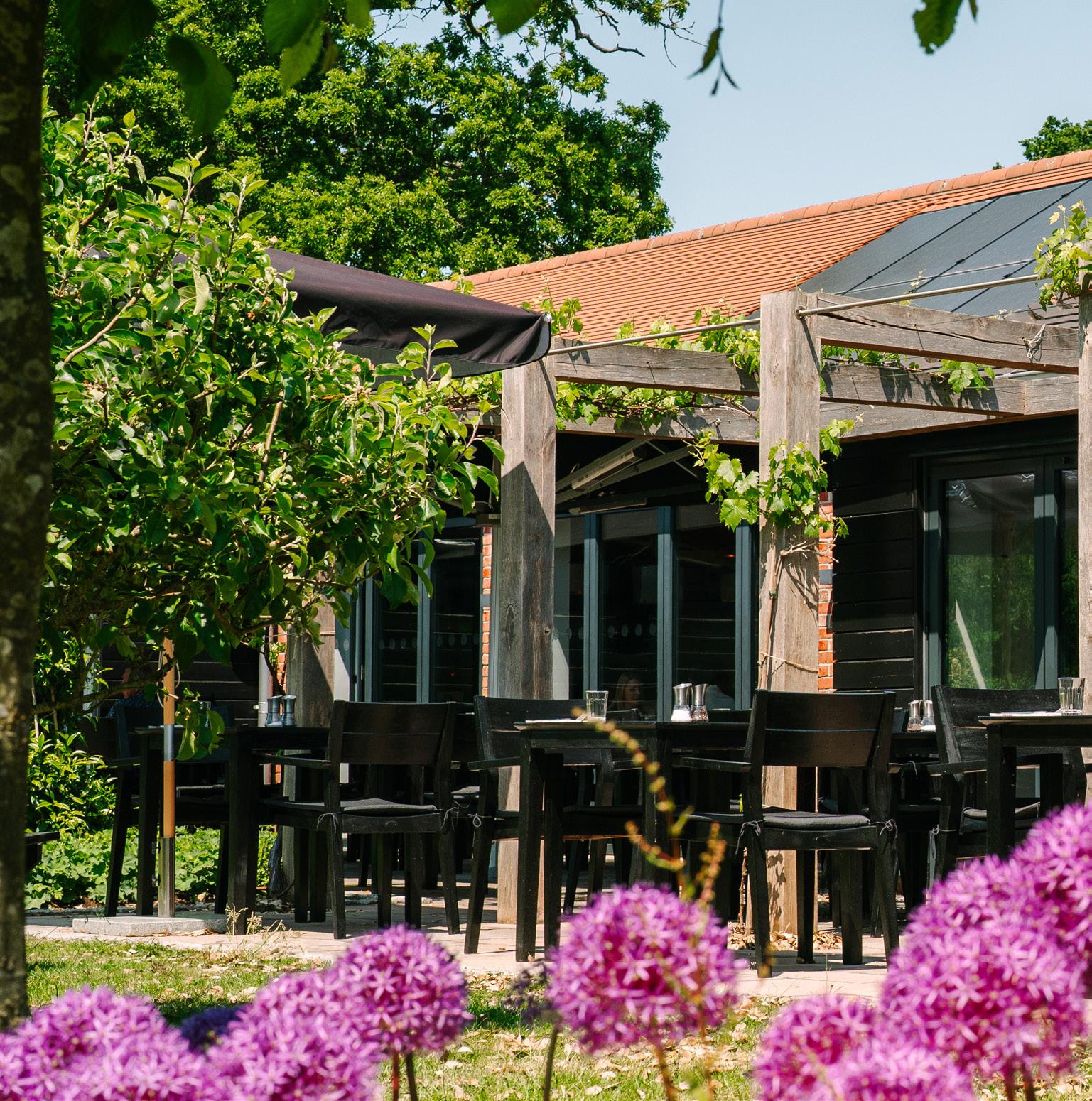 This purpose-built space create in partnership with James Martin sets the stage for enjoying and learning about food and cooking. The design is open plan; bi-folding doors and glass panelling flood the rooms with light. Surrounding the building are raised beds and the greenhouse where herbs and vegetables are grown year-round to supply The Kitchen by James Martin.