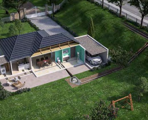 • Tank with pre-assembled hydraulic and sealing gasket, 1 Sanipump GR, PVC pipe, pedestrian cover