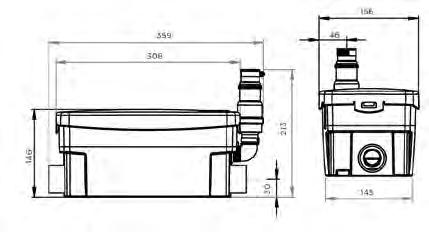 Dimensions (mm) Sanipump GR S Sanipump VX S Material Shaft Stainless steel Stainless steel Pump housing PA 6 GF PA 6 GF Waterproofing NBR NBR Foot PA 6 GF PA 6 GF Motor housing PA 6 GF PA 6 GF Impeller PA 6 GF PA 6 GF Electrical features Voltage (V) 230 230 Frequency (Hz) 50-60 50-60 Power consumption P1 (W) 1500 1500 Power output P2 (W) 1050 1050 RPM (revolution per minute) () 2800 2800 Electrical class I Motor insulation class F F Mode of operation S3 30% S3 15% Immersion depth (m) 5 5 Power cable: Length (m) 10 10 Power cable: Type of cable, section (mm²) H07 RN-F 3G, 1.5 H07 RN-F 3G, 1.5 Hydraulics Total head (m) 14 13 Max. flow rate (m³/h) 11 27 Discharge diameter DN 40 50 Discharge diameter G (inches) 1’’¼ 2 ON level /OFF level (mm) 400/100 400/100 Max. temperature of the pumped liquid (5 min) 70°C 70°C Type of impeller Pro X K2 grinder vortex Type of activation float float Identification and logistics Gross weight (kg) 13 13 Barcode 3308815074610 3308815076201 Product code 30014 30015 See page 10 Flow rate (m³/h)