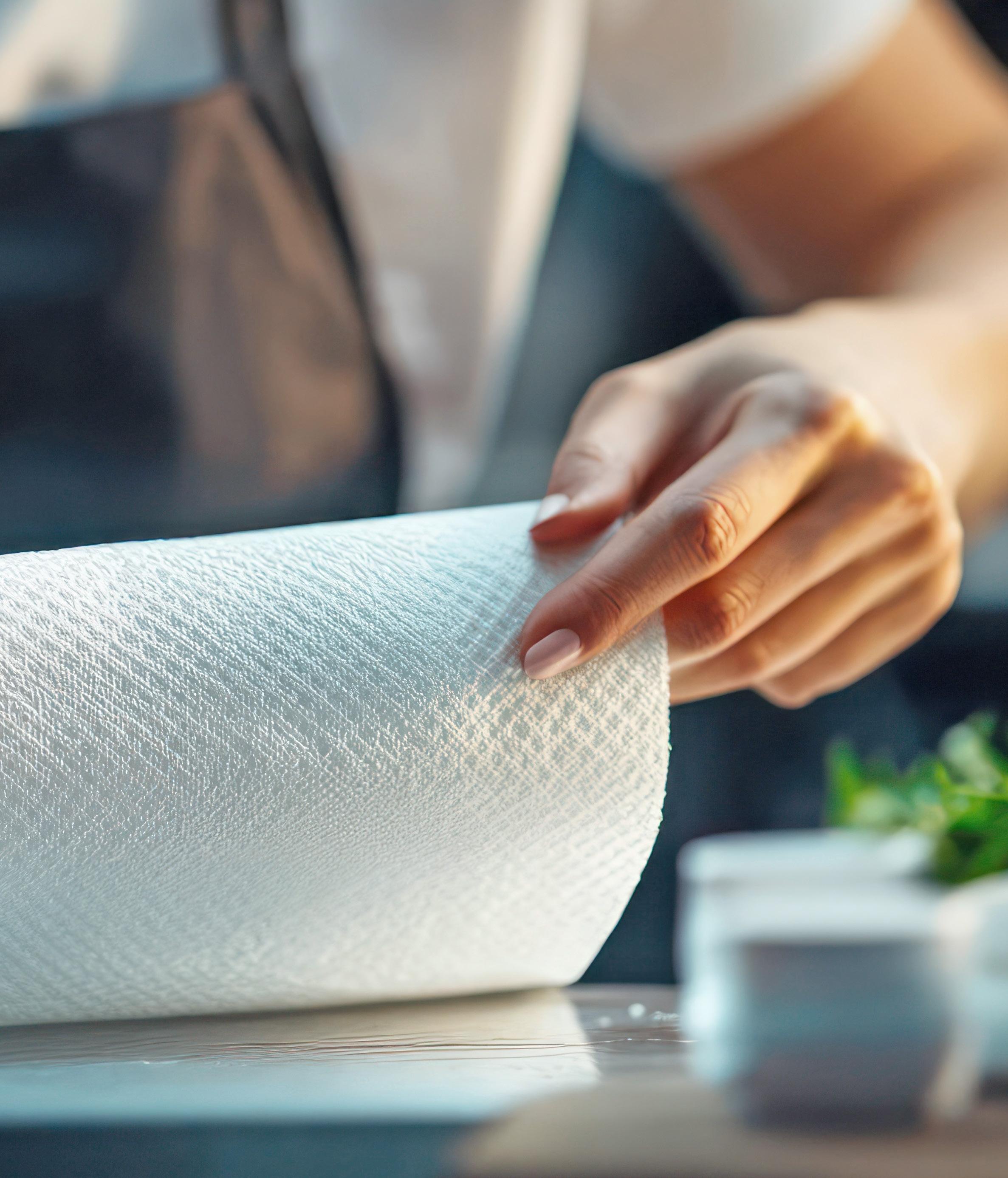 I tillegg tilbyr vi en støvfri kjøkkenrull i nyfiber, perfekt til bruk på kjøkkenet og i andre miljøer der renslighet og kvalitet er spesielt viktig.
