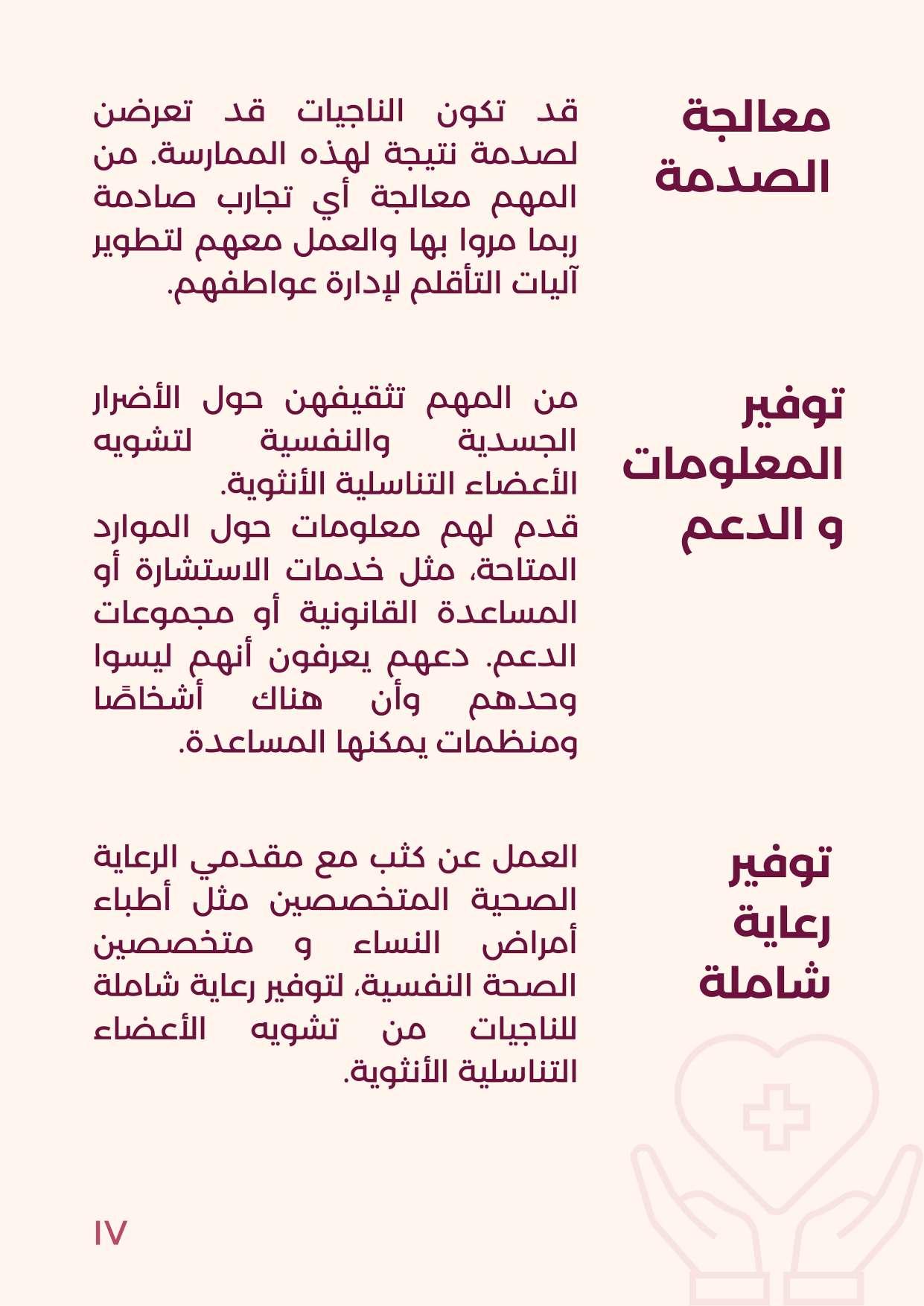 دليل انتِ غالية لمكافحة تشويه الأعضاء التناسلية الأنثوية هو دليل شامل لمقدمي الرعاية الصحية في المستقبل لفهم ومعالجة تشويه الأعضاء التناسلية الأنثوية (FGM). ويغطي العواقب الصحية، والعوامل الثقافية، و العوامل القانونية والأخلاقية، والخطوات العملية التي يجب اتخاذها عند مواجهة حالات تشويه الأعضاء التناسلية الأنثوية. يُمكِّن الدليل الأفراد من القيام بدور نشط في إنهاء هذه الممارسة الضارة وتعزيز صحة النساء والفتيات في مصر.