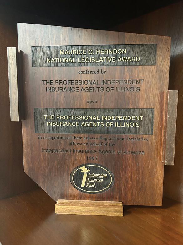 Illinois was named the 1997 recipient of the Maurice Herndon Award which was established by the Illinois association in 1980 in honor of Maurice Herndon, who led the Big I office in Washington, D.C. for many years. The honor is bestowed upon a state association that demonstrates outstanding support for federal affairs. The Illinois state association had excluded itself from consideration upon establishment of the award, but an exception was made this year.