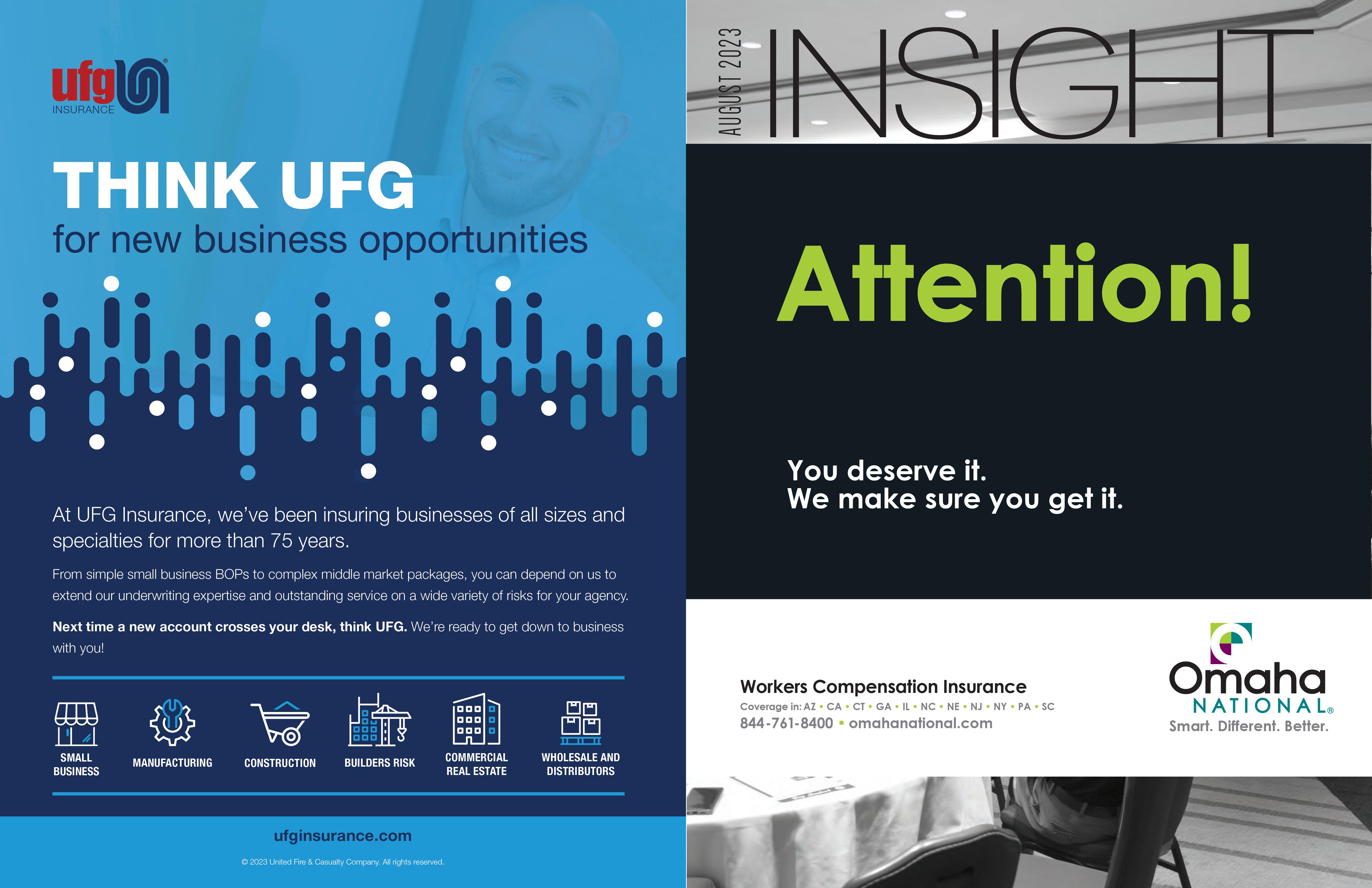 throughout the sales process. We offer superior products that employers love, like payroll-plus-comp, and we make onboarding smooth and easy. When you or your clients call us, a real live person answers the phone. Simply put, you get the attention you deserve. Omaha National Underwriters, LLC is an MGA licensed to do business in the state of California. License No. 078229. “A” (Excellent) rated coverage through Omaha National Insurance Company, Preferred Professional Insurance Company, and/or Palomar Specialty Insurance Company. 844-761-8400 • omahanational.com