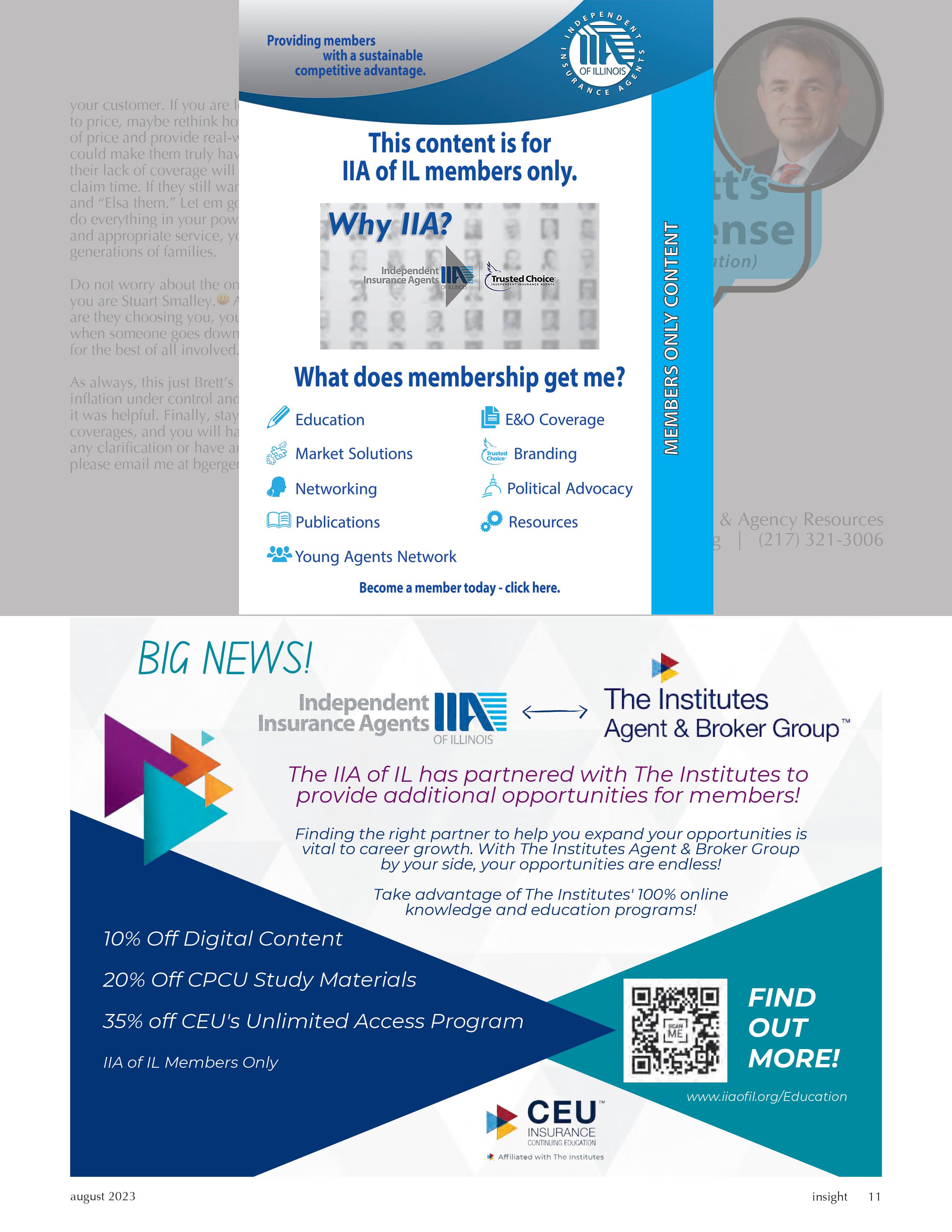 Director of Education and Agency Resources Brett Gerger, CIC - (217) 321-3006 - bgerger@iiaofil.org