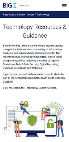 One of the Big I Illinois Technology Committee’s 2024 goals was to create a variety of technology-focused resources for our members. These resources are available in the Big I Illinois Solution Center and cover topics such as tech articles, Artificial Intelligence (AI) tools and kits, data security, cybersecurity, disaster planning, accessibility, and more. This collection is continually growing and evolving, so we encourage you to check back often! Go to ilbigi.org/resources/solution-center/ technology for details.