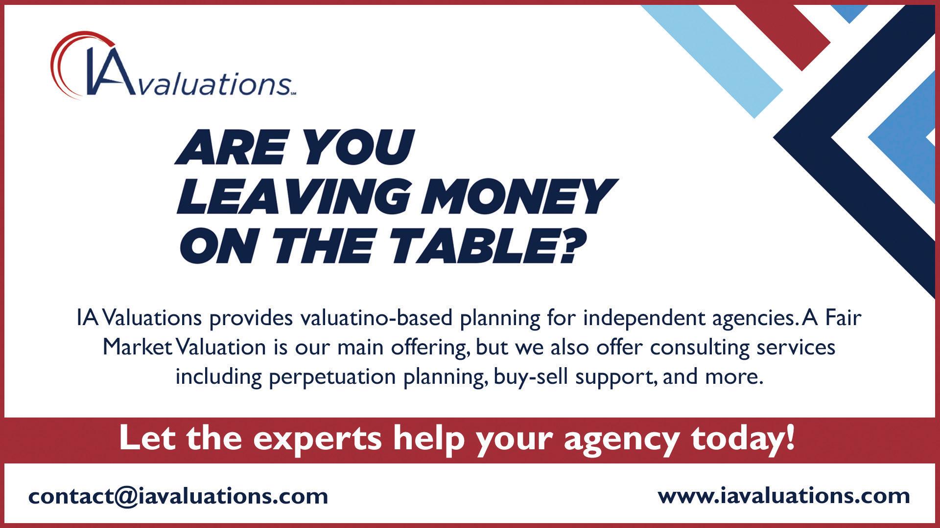 Visit ilbigi.org/valuations to find out how IA Valuations can help you meet your goals and help your agency become more profitable. You’ll also find quarterly webinars hosted by the IA Valuations teams that are no cost.