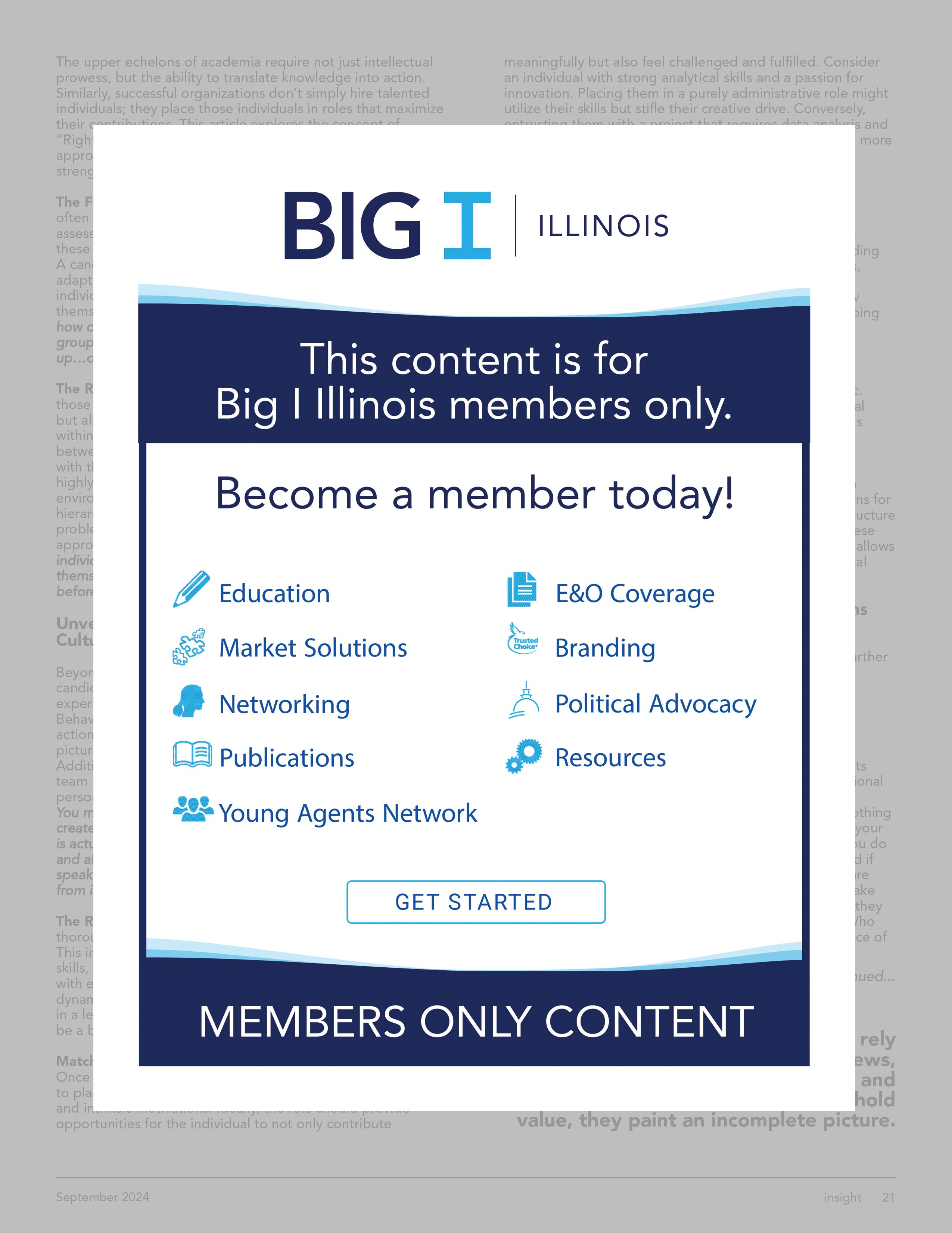 Many of my non-insurance friends have asked why I chose to take on this role and dedicate my time to this organization. For me, the answer is simple. This industry and association have given so much to my agency, my family, and me that it only feels right that I should give back. Big I Illinois has brought our agency quality education, business solutions, and carrier partner opportunities. They have fought for our industry and on behalf of our clients in Springfield and Washington. Our association makes our industry better, and for that, I am eternally grateful.