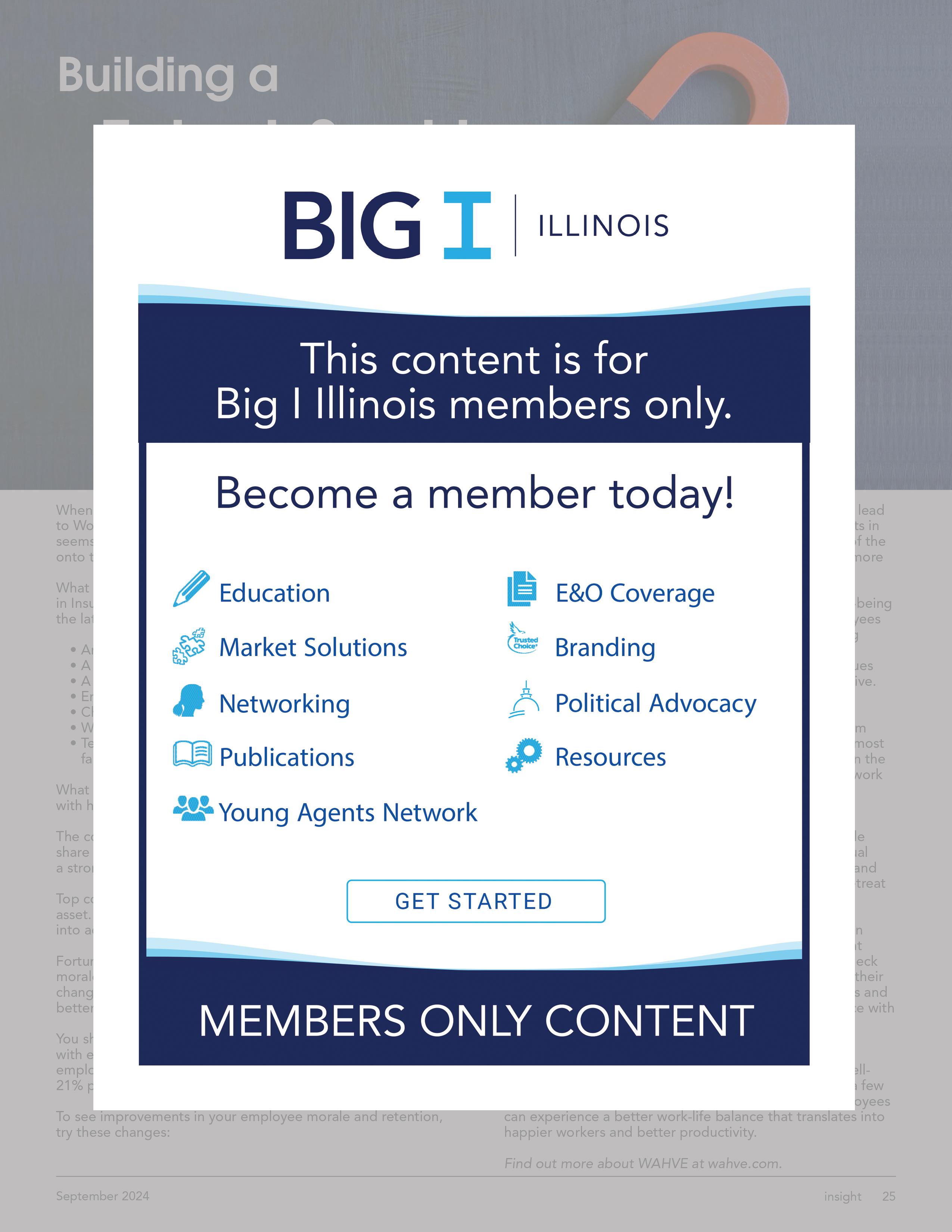 In the past year, we went BIG, starting with the state association rebrand to Big I Illinois. To play on words here, we initiated a BIG (I) name change and new website, we have celebrated BIG (I) wins at the Capitol in Springfield. Behind the scenes, the Board of Directors and all of our committees have met, made plans, and executed BIG (I) goals, working hard on behalf of our member agents. The Big I Illinois staff and all of the volunteer members have focused on growing talent in the IA channel, bringing real tangible solutions to our members, and targeting those benefits to the correct groups of member agents. I am proud of the work we have done and look forward to all that can be accomplished in the future. As the landscape of our agencies, our company partners, and our industry as a whole continues to change and evolve, it is ever so important to remember that OUR association is persistently working on OUR behalf to continue to provide us a “sustainable, competitive advantage” for another 125 years!