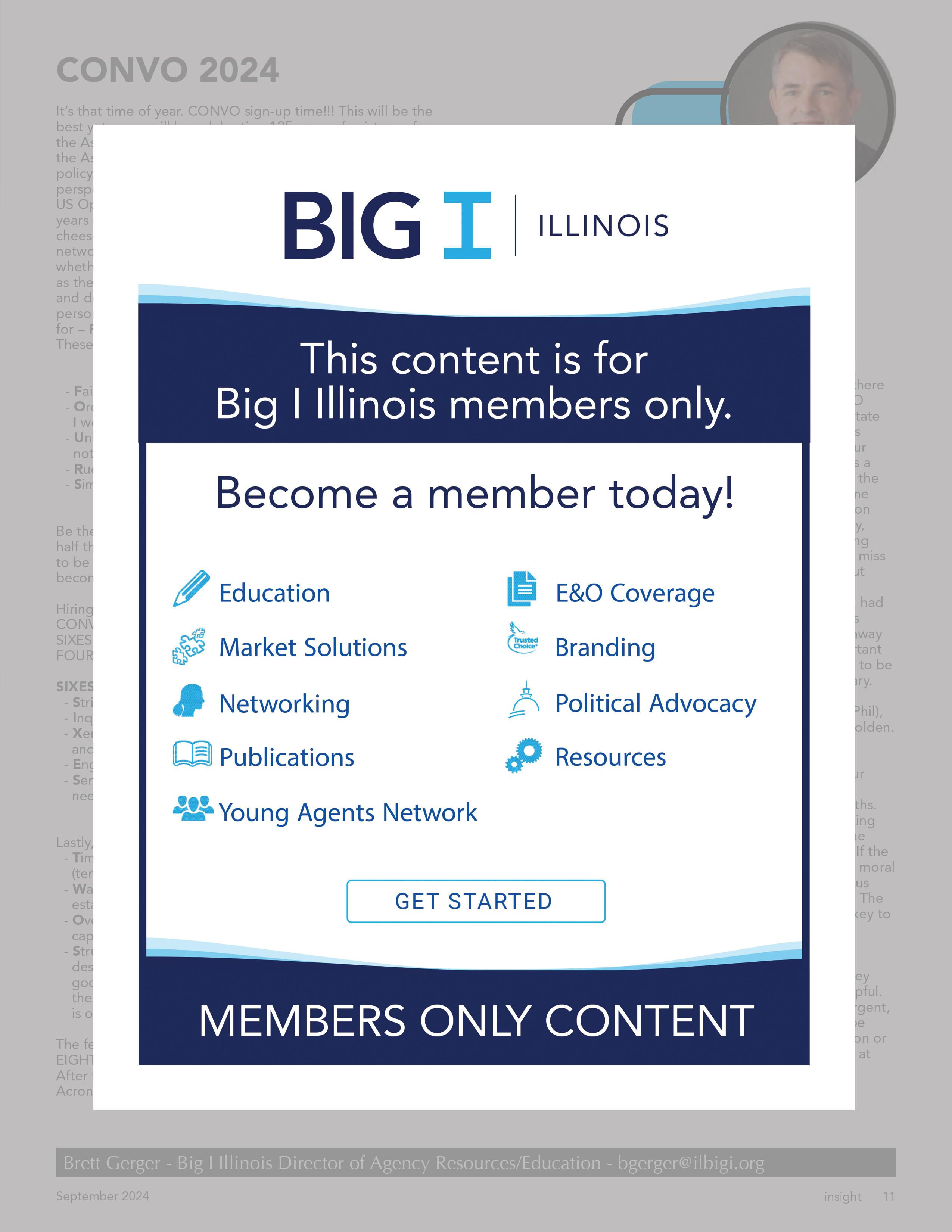 I am better because of my involvement in Big I Illinois, and I don’t think any words I share can truly express how appreciative I am to have had this opportunity. Thank you to the staff, the Board of Directors (past and present), and our member agents. It has been my honor to serve as your President.