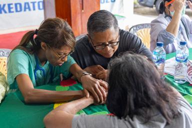 Our team arrived and hit the ground running, conducting a three-day medical clinic in rural villages. The local people have difficulty accessing healthcare, so the clinics were very well received. The mayor of each village was Muslim, and they were very welcoming. In one village, both the mayor and the council members went through the clinic and received care. The people were spiritually open, accepting our literature and requesting us to pray for them. It was incredible to see our team praying for Muslim women