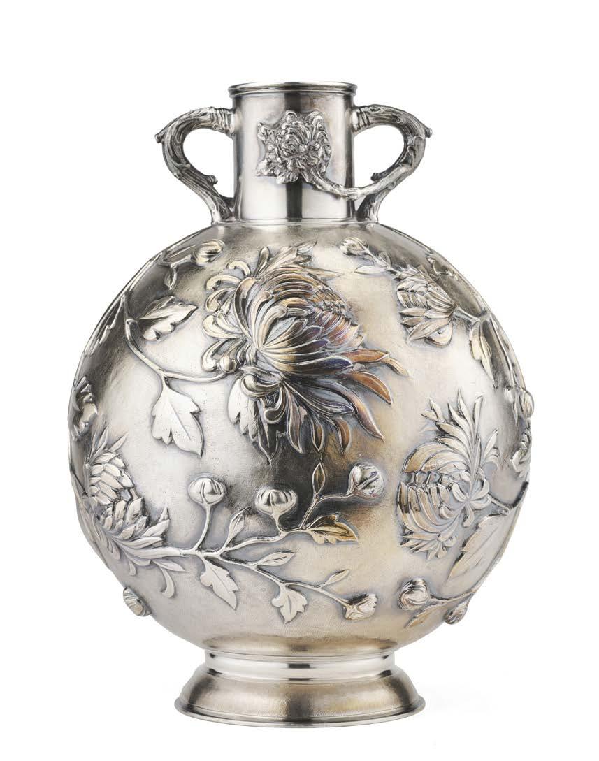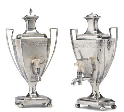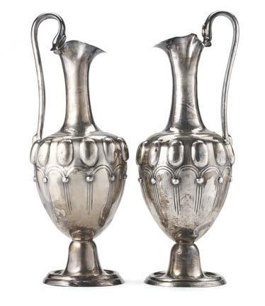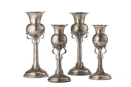 Due coppie di vasi Art Nouveau in argento, appesantiti. Città di Shef eld, 1904. Argentiere Walker & Hall (g lordi 1500) (h. max cm 25,5) (difetti)