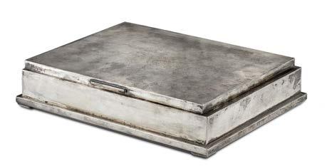 Federico Buccellati. Scatola rettangolare in argento con coperchio inciso raf gurante il Foro Romano visto dall’Arco di Tito. Firmato al retro “Federico Buccellati Orafo” entro cartiglio (g 260) (cm 12x3x9) Con scatola originale (difetti)