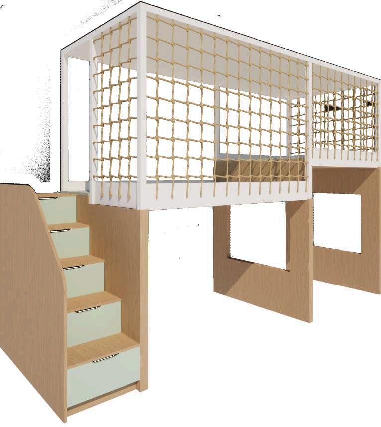 • Niño: con cama nido de 1900x900 y zona de juegos, escritorio. Color verde.