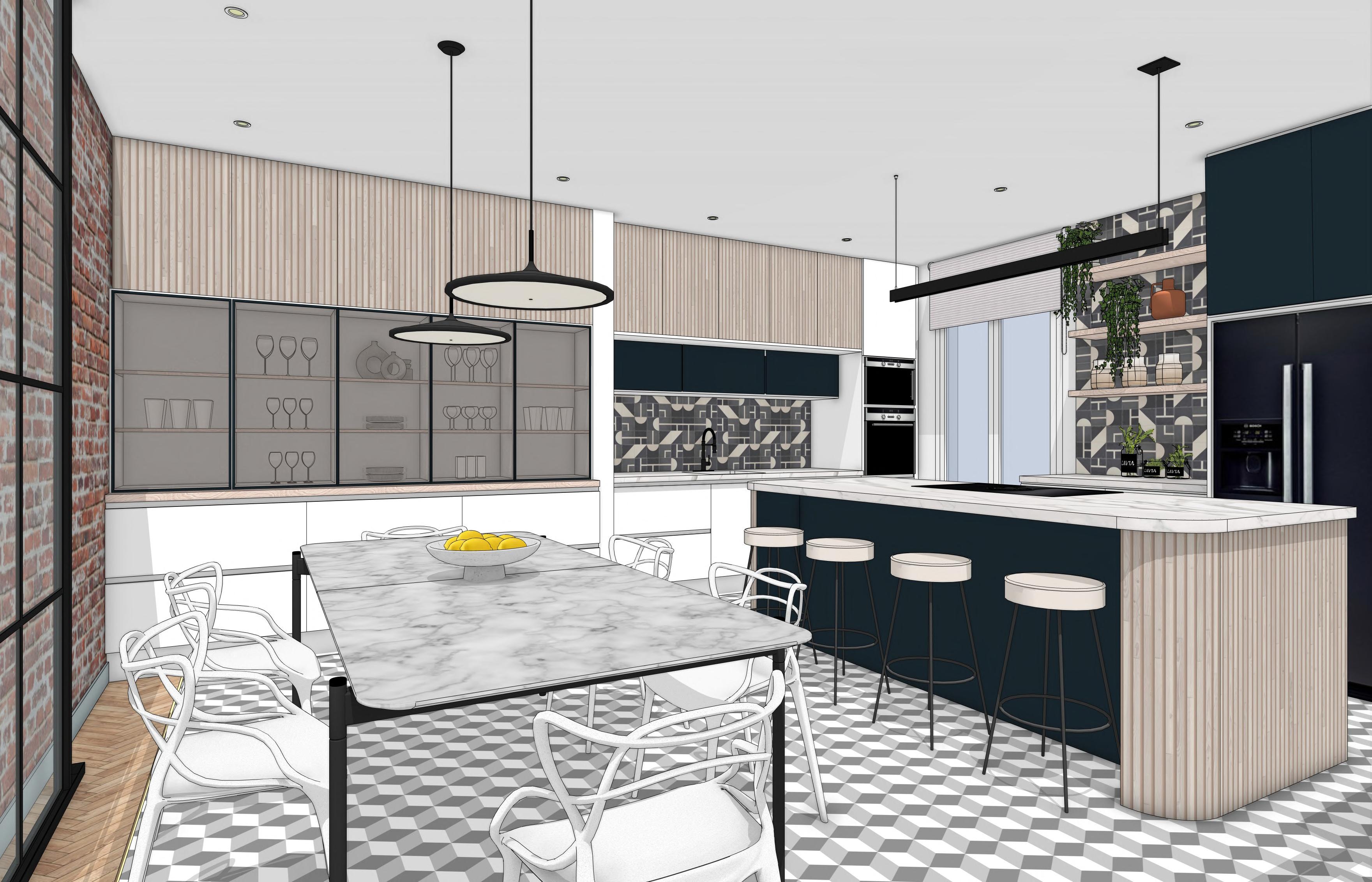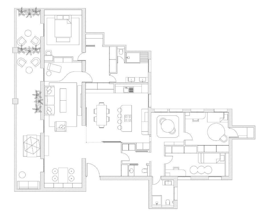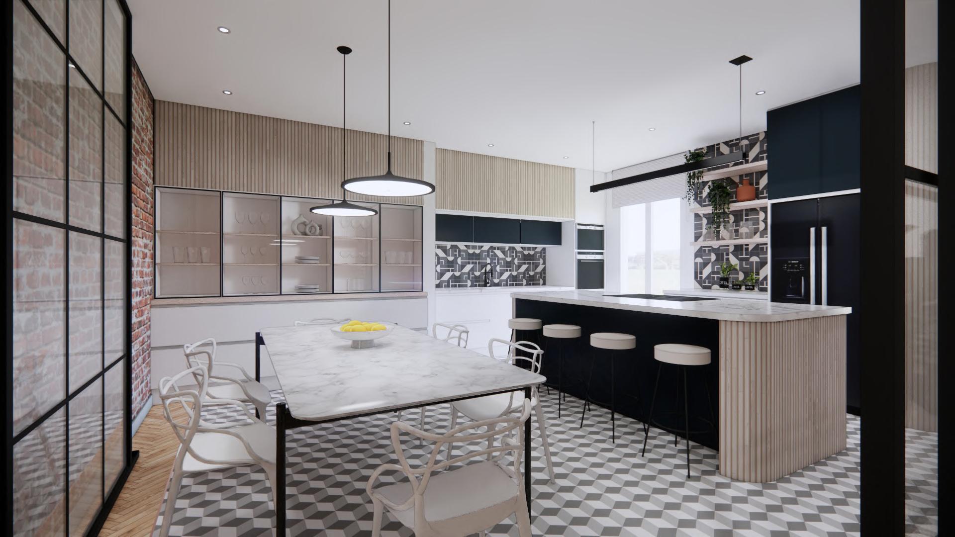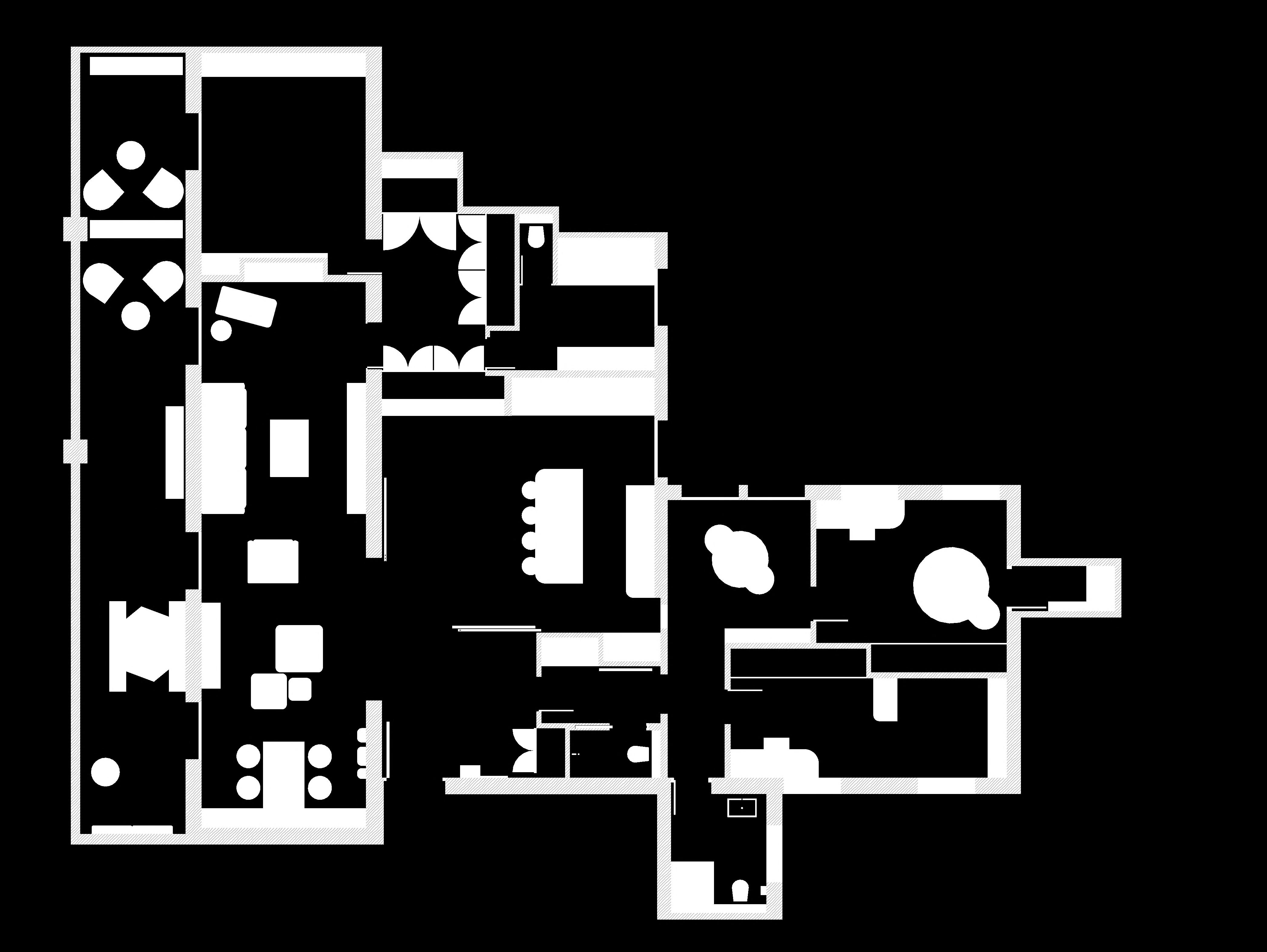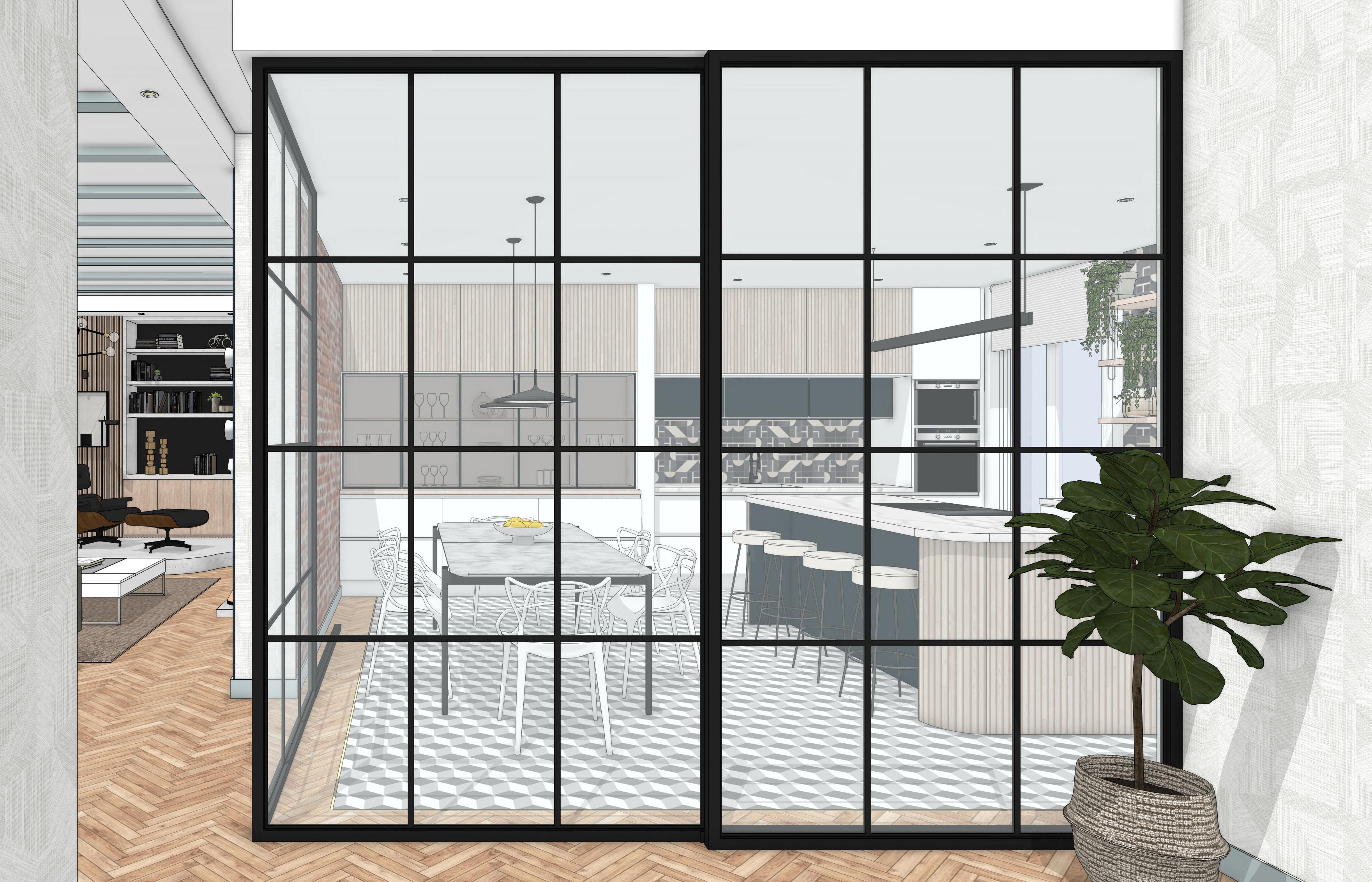 - Las zonas comunes no están conectadas, prioridad en el briefing aportado por los clientes, especialmente entre el salón-comedor y cocina debe haber una continuidad.