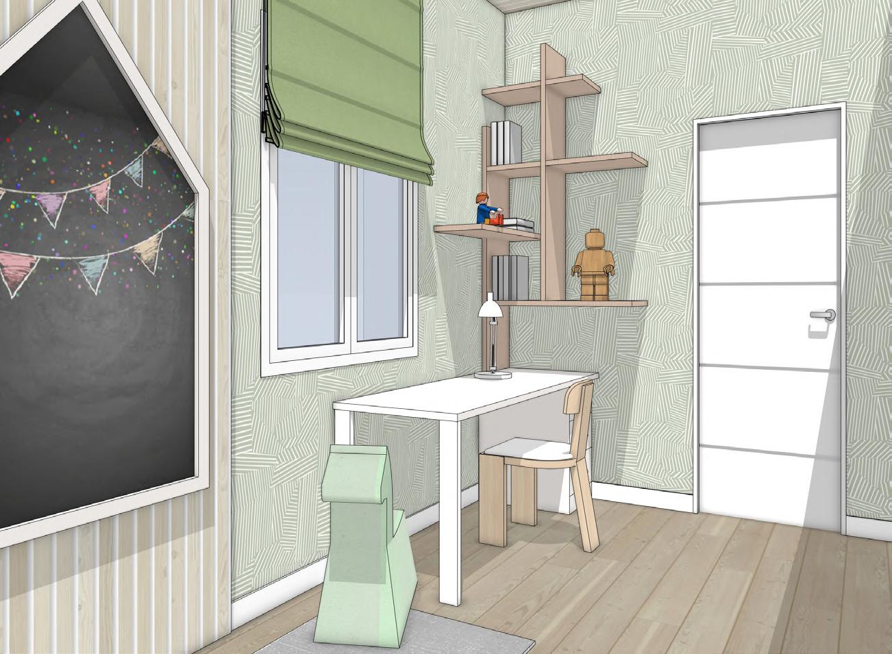 Zona de noche II: Estudio, dormitorio niña, dormitorio niño, cuarto de baño
