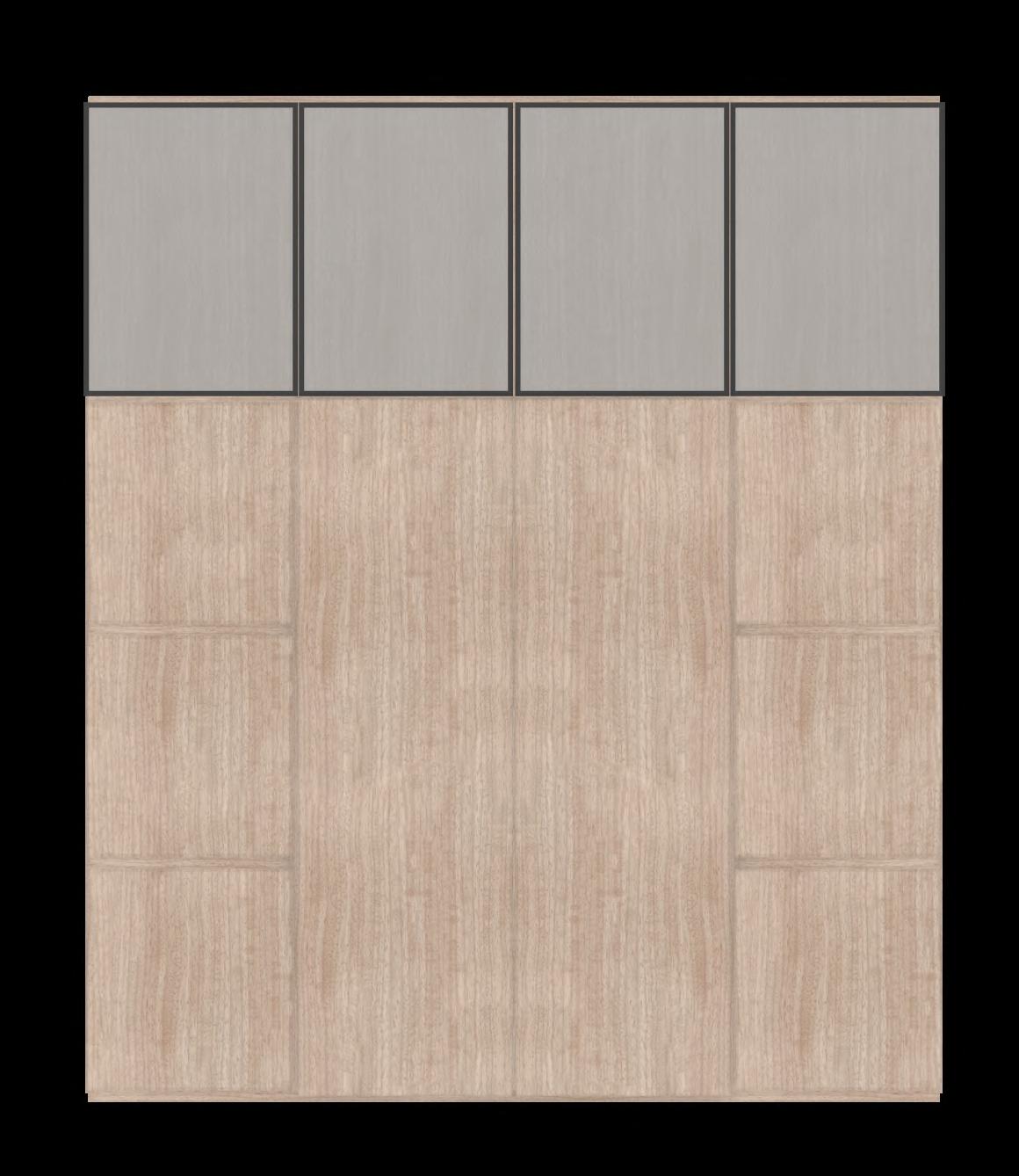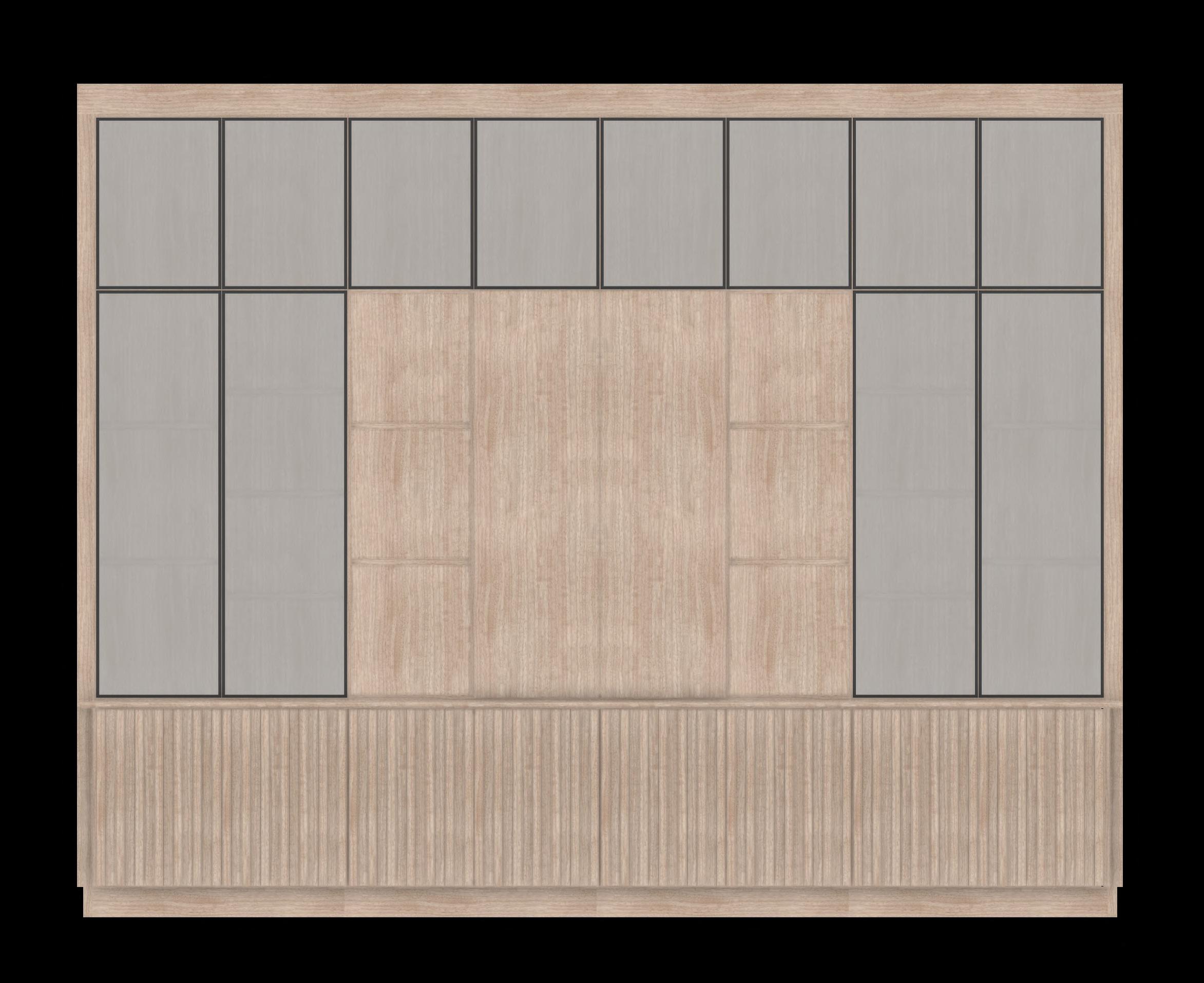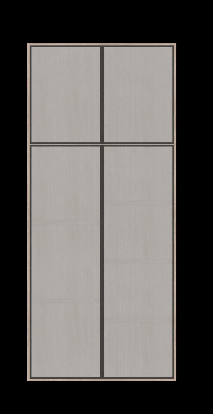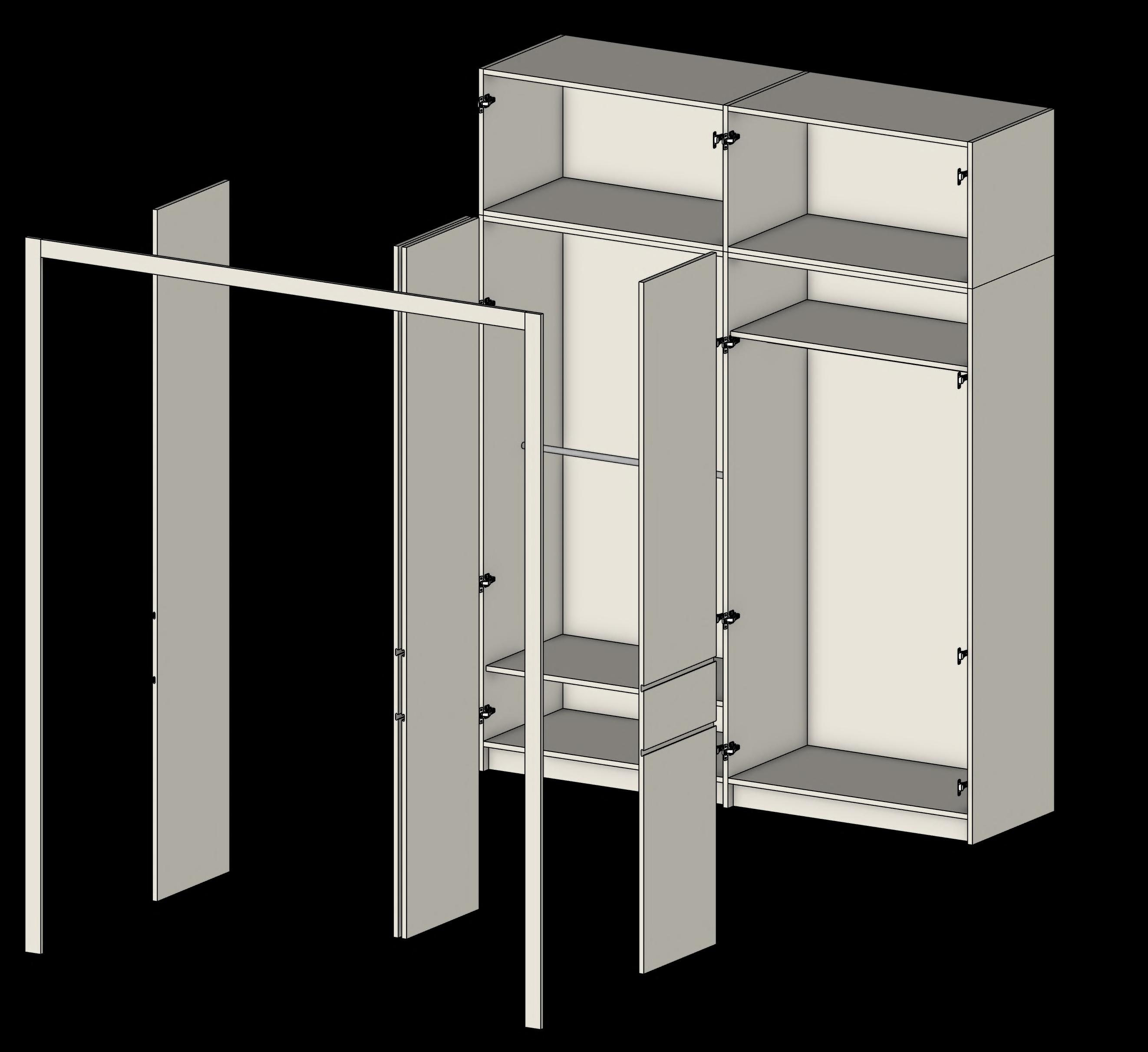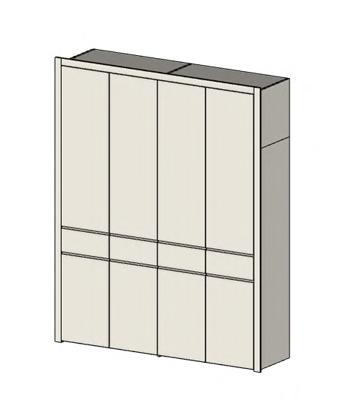 Montar ambos módulos MM13A y MM13A uno junto a otro, centrados en el hueco de la pared. Fijar ambos módulos y atornillar a pared. Colocar las bisagras en su correspondiente posición en las cuatro puertas y anclar en su correspondiente posición en los laterales del armario.
