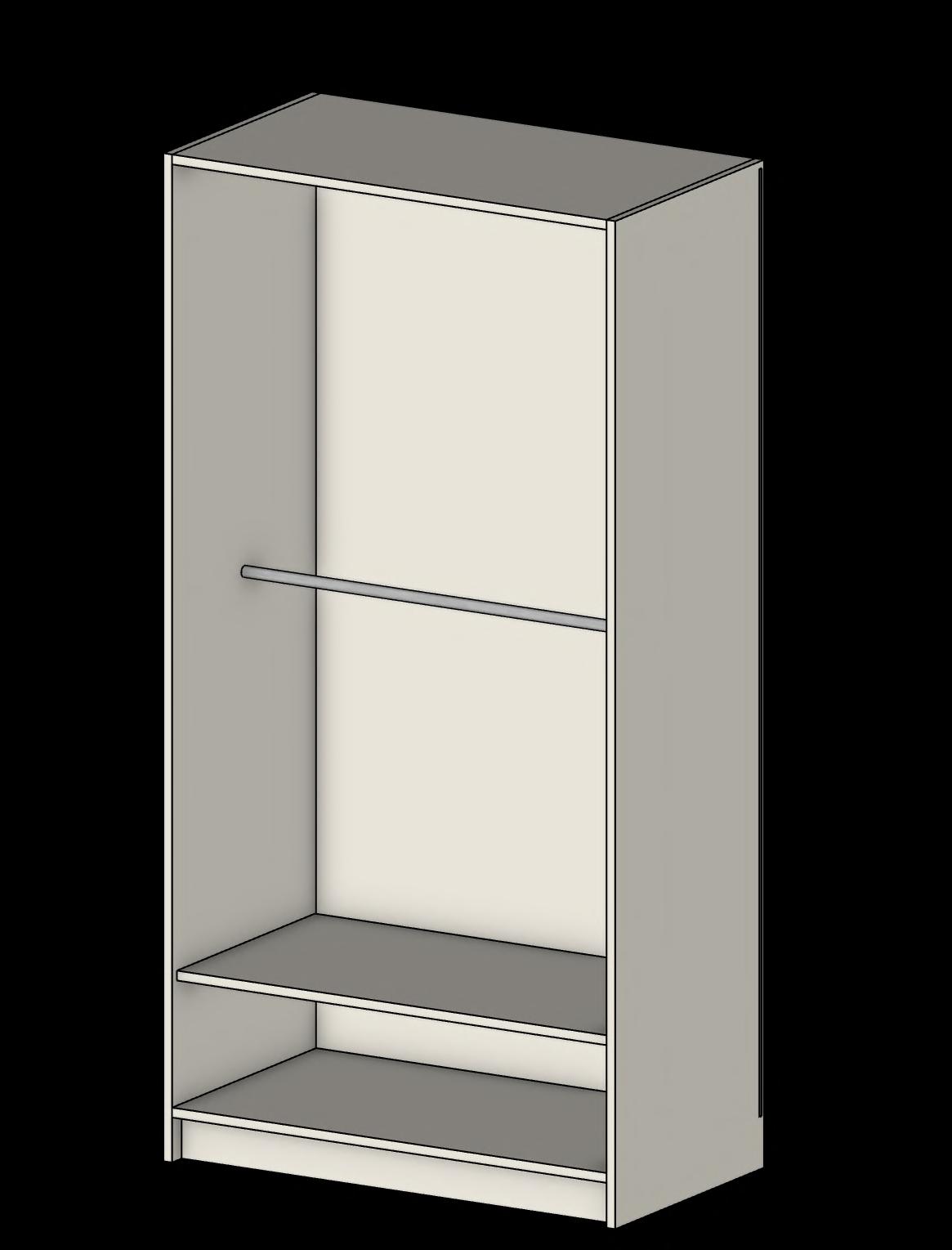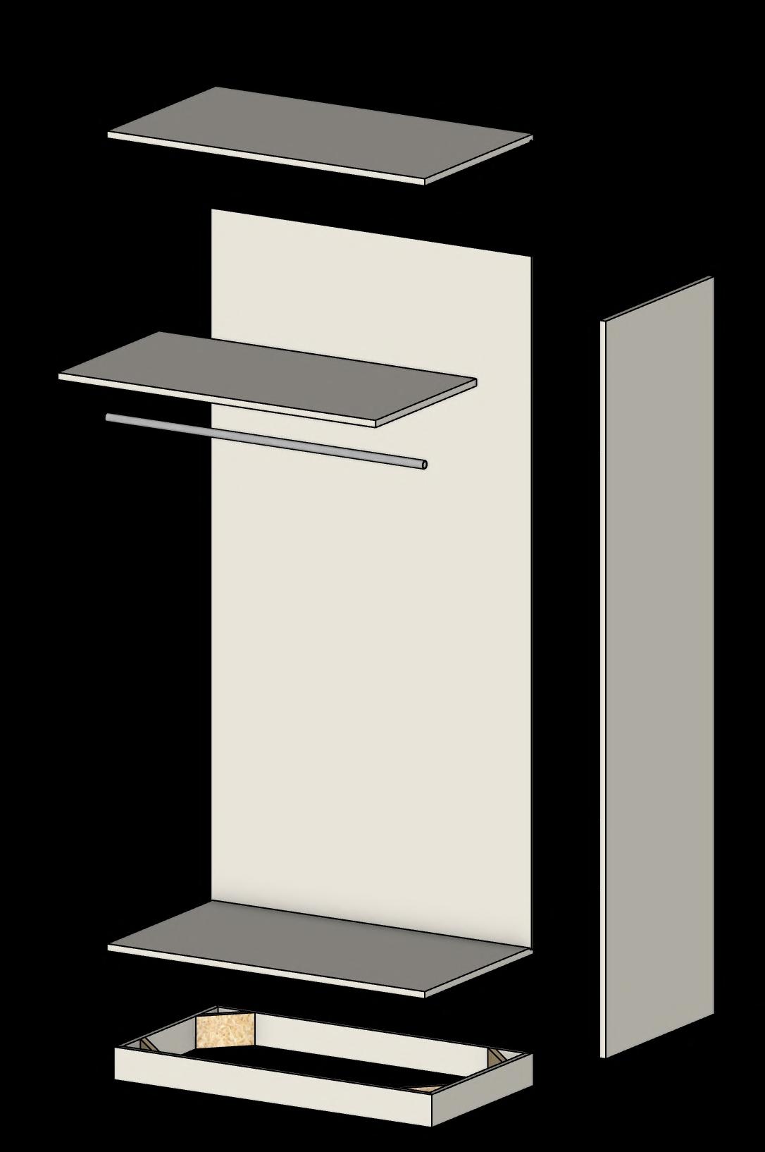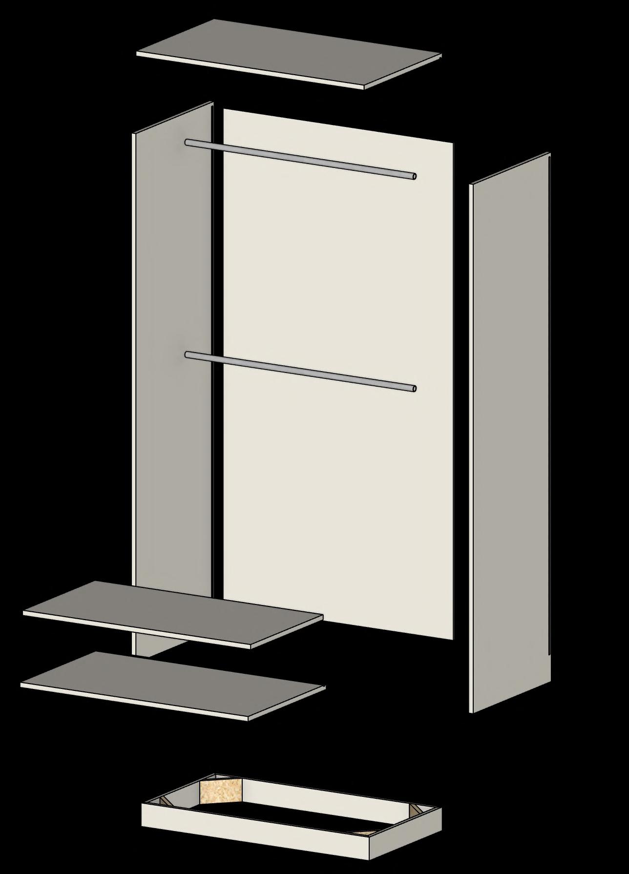 Montar ambos módulos MM13A y MM13A uno junto a otro, centrados en el hueco de la pared. Fijar ambos módulos y atornillar a pared. Colocar las bisagras en su correspondiente posición en las cuatro puertas y anclar en su correspondiente posición en los laterales del armario.