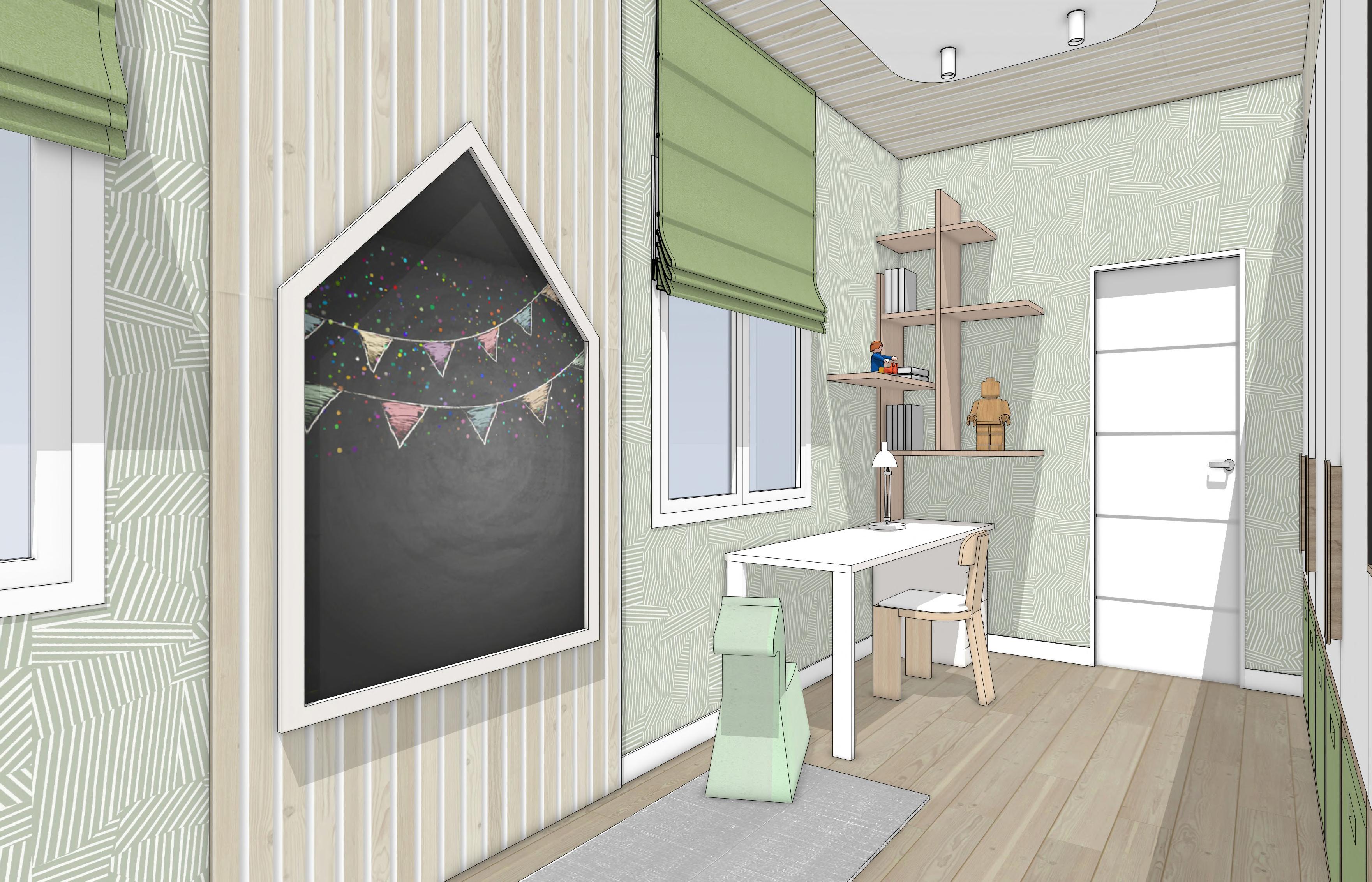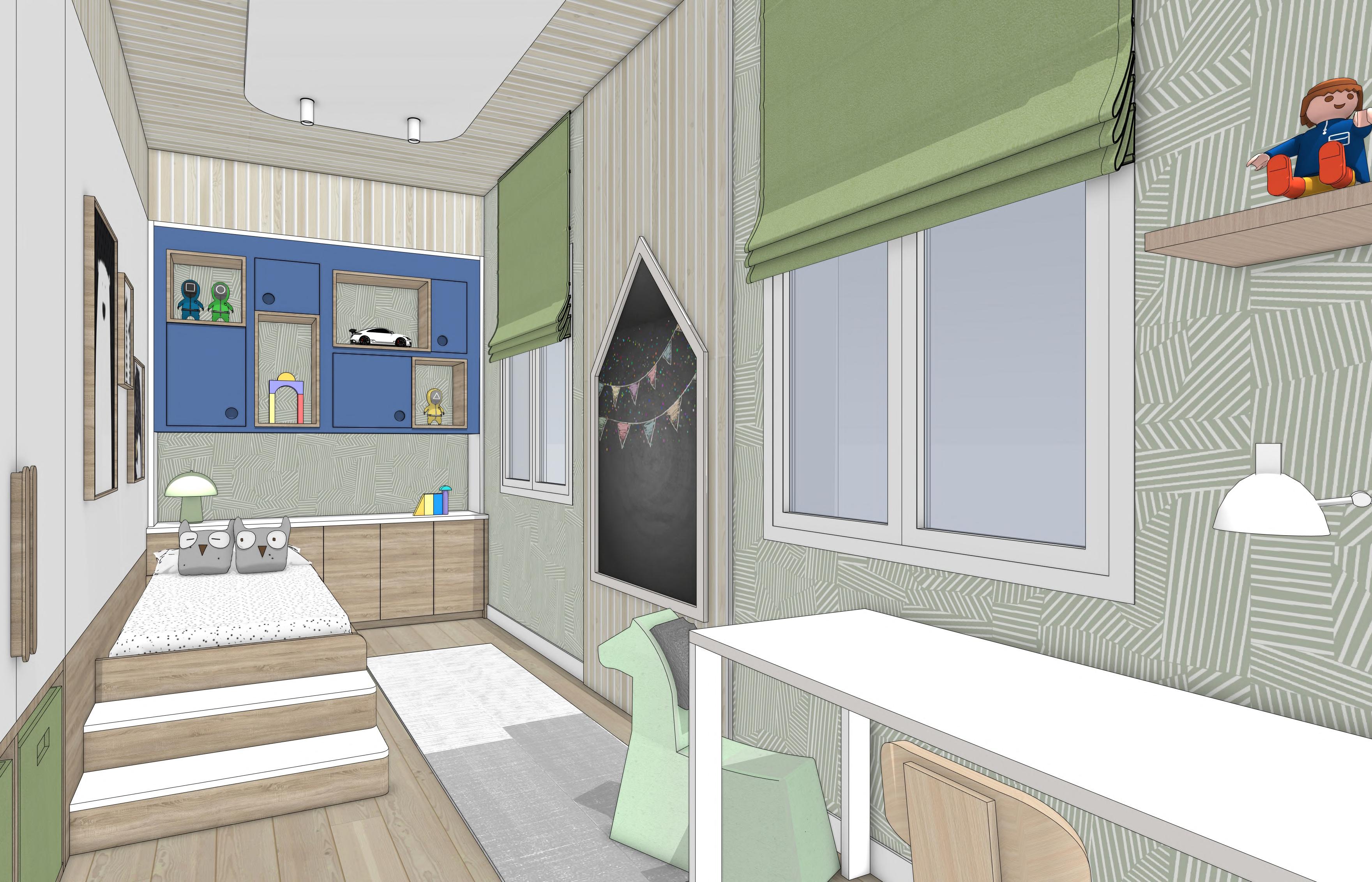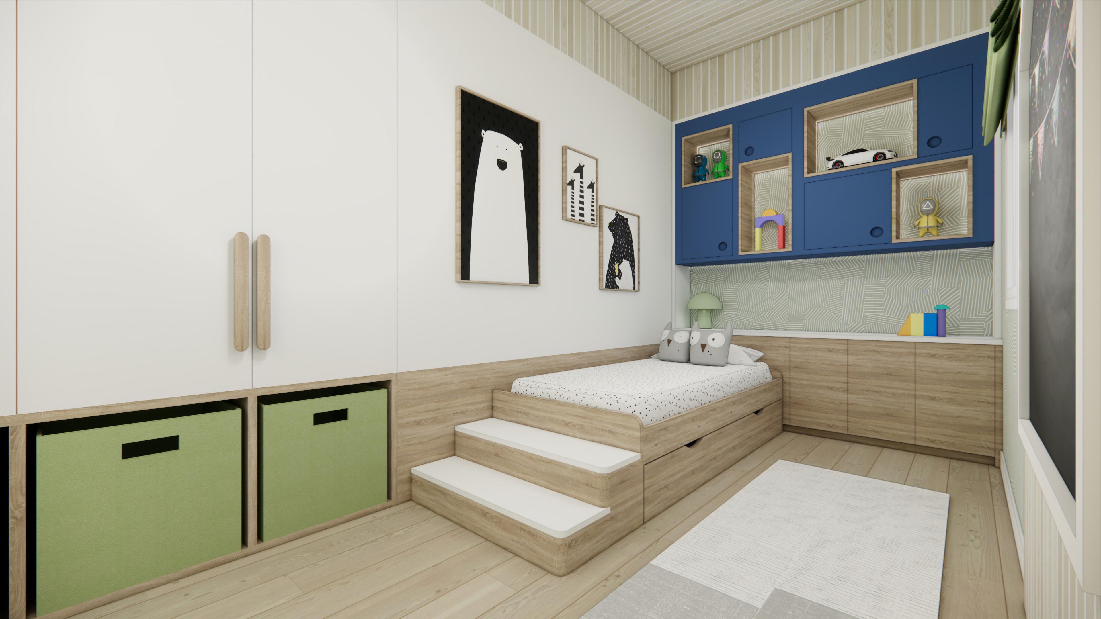 Niño: con cama nido de 1900x900 y zona de juegos, escritorio. Color verde.