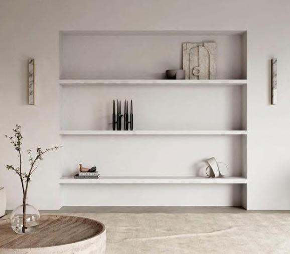 Traseras encastradas en estructura en MDF grosor 10mm lacado en NCS S 2002-Y20R.